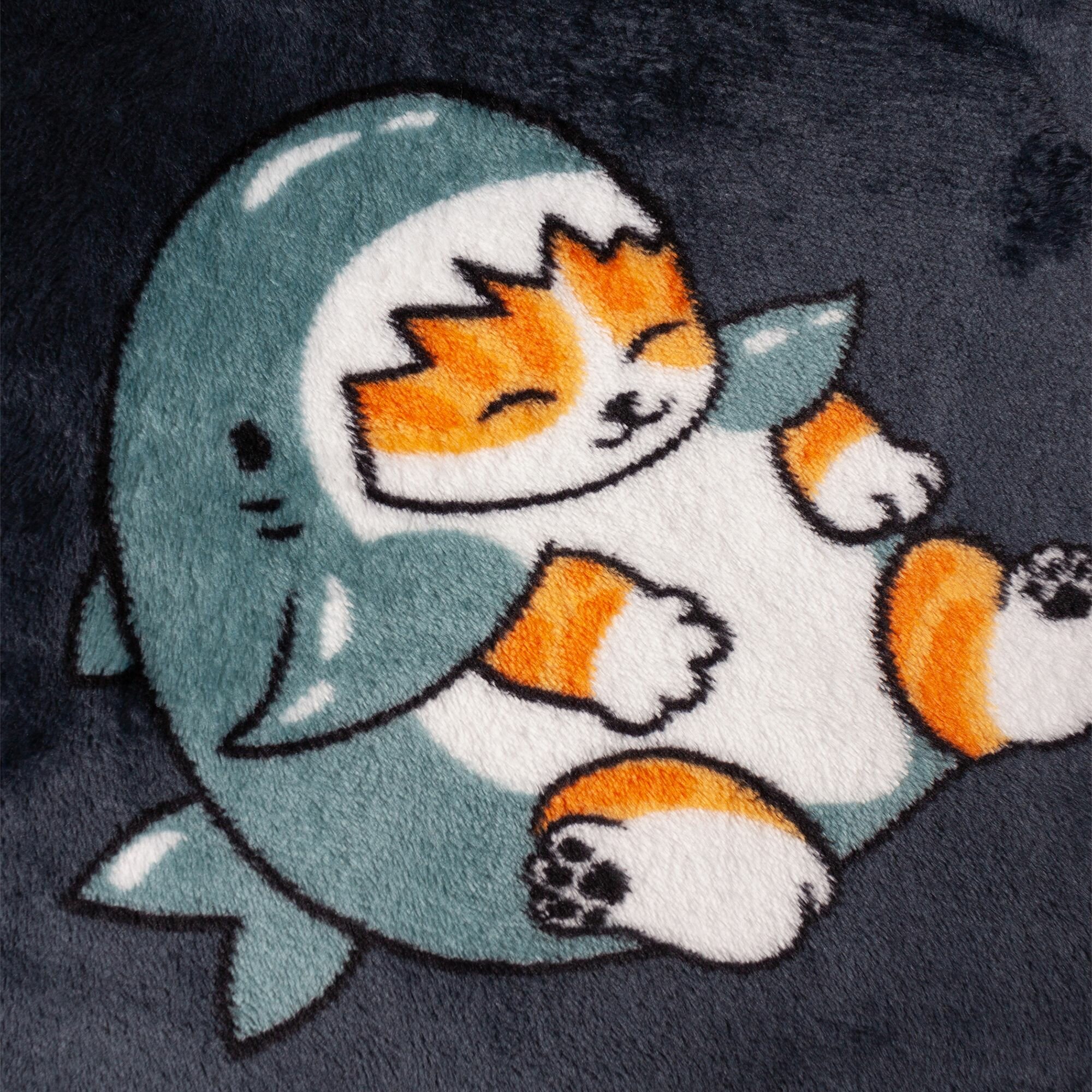 Плед с рисунком кот-акула, микрофибра, 150х200 см, серый