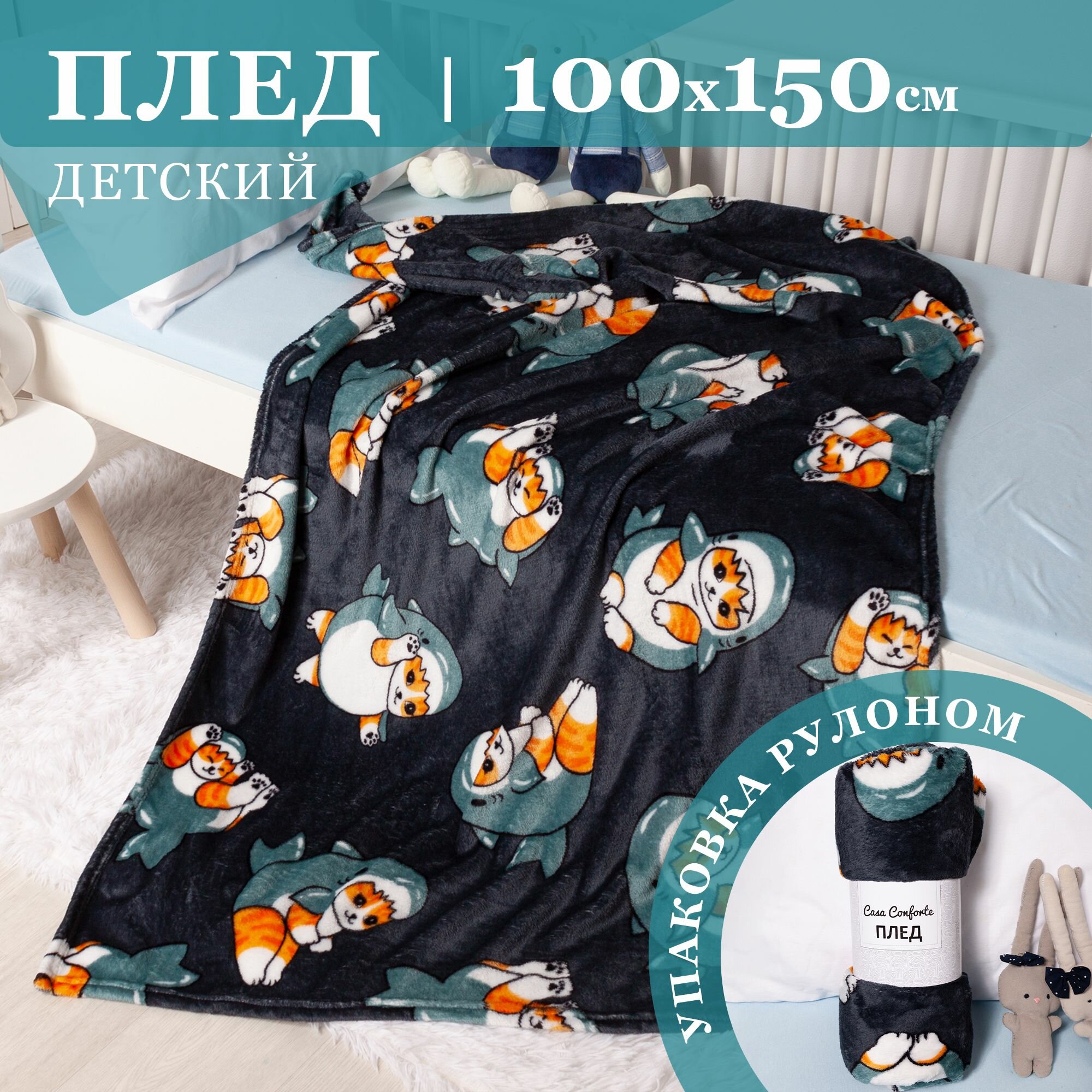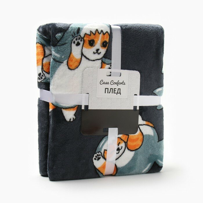 Плед велсофт детский 100х150 см Casa Conforte Фестиваль, кот-акула / серый