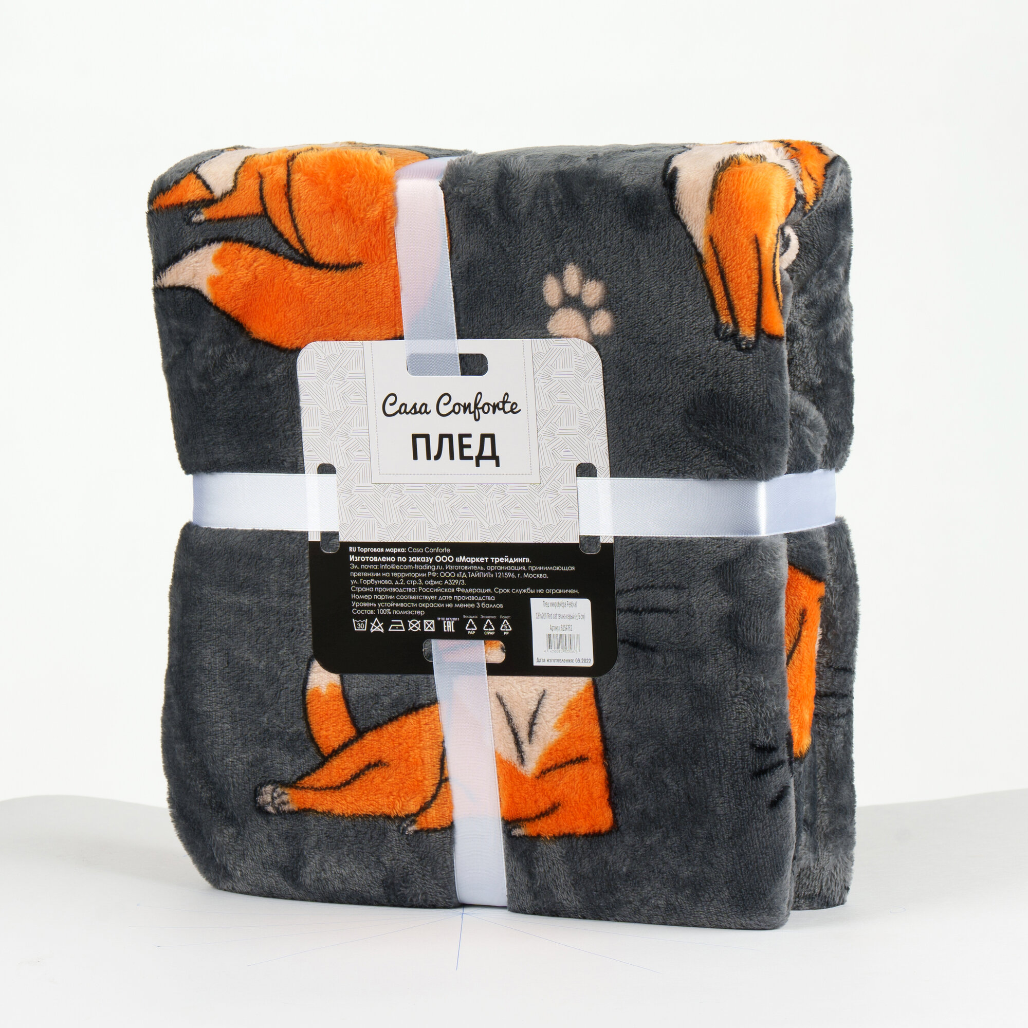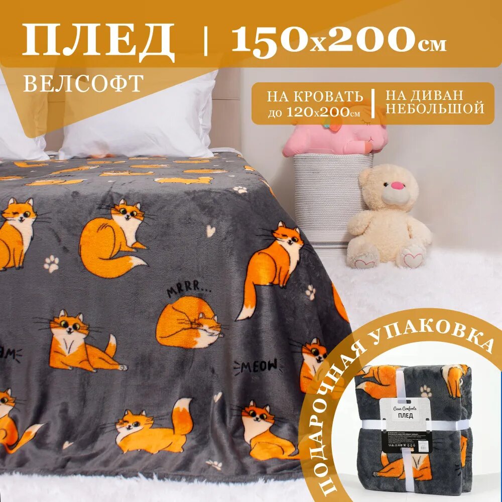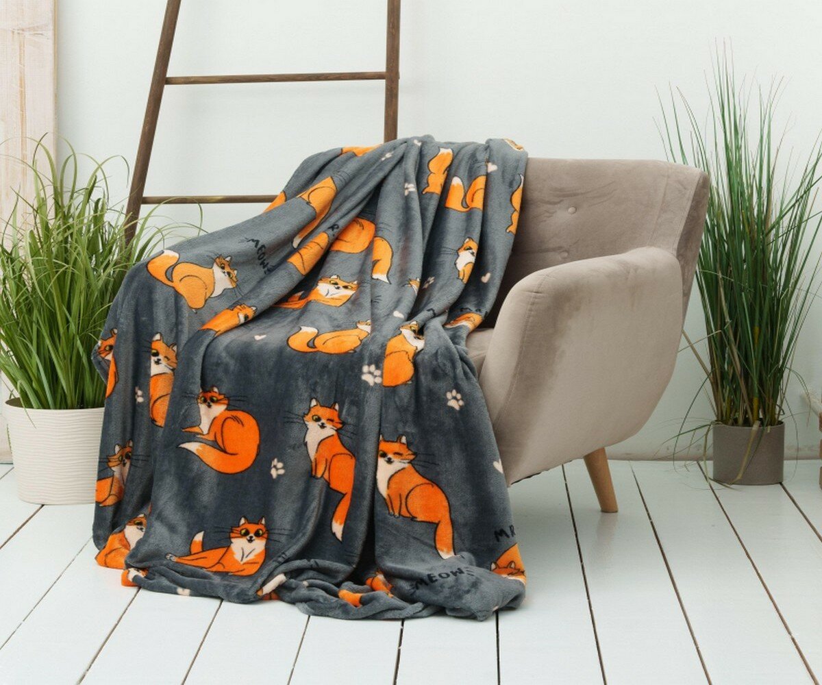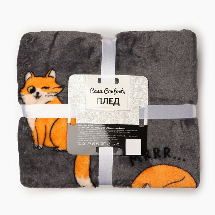 Купить Casa Conforte Плед Festeval Red Cat 150х200см, серый, микрофибра 190г/м, пэ100%