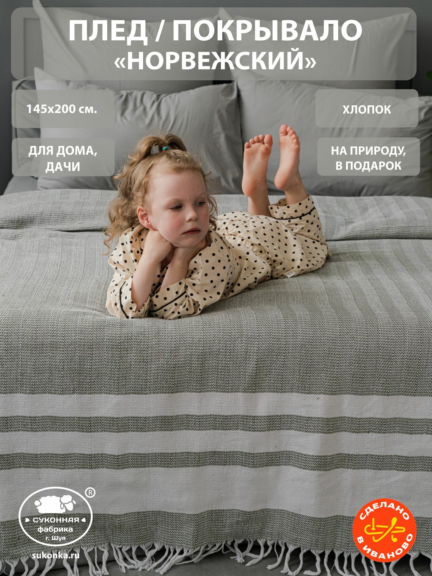 Плед хлопковый Норвежский оливковыйСуконная фабрика 145х200 см интересное: