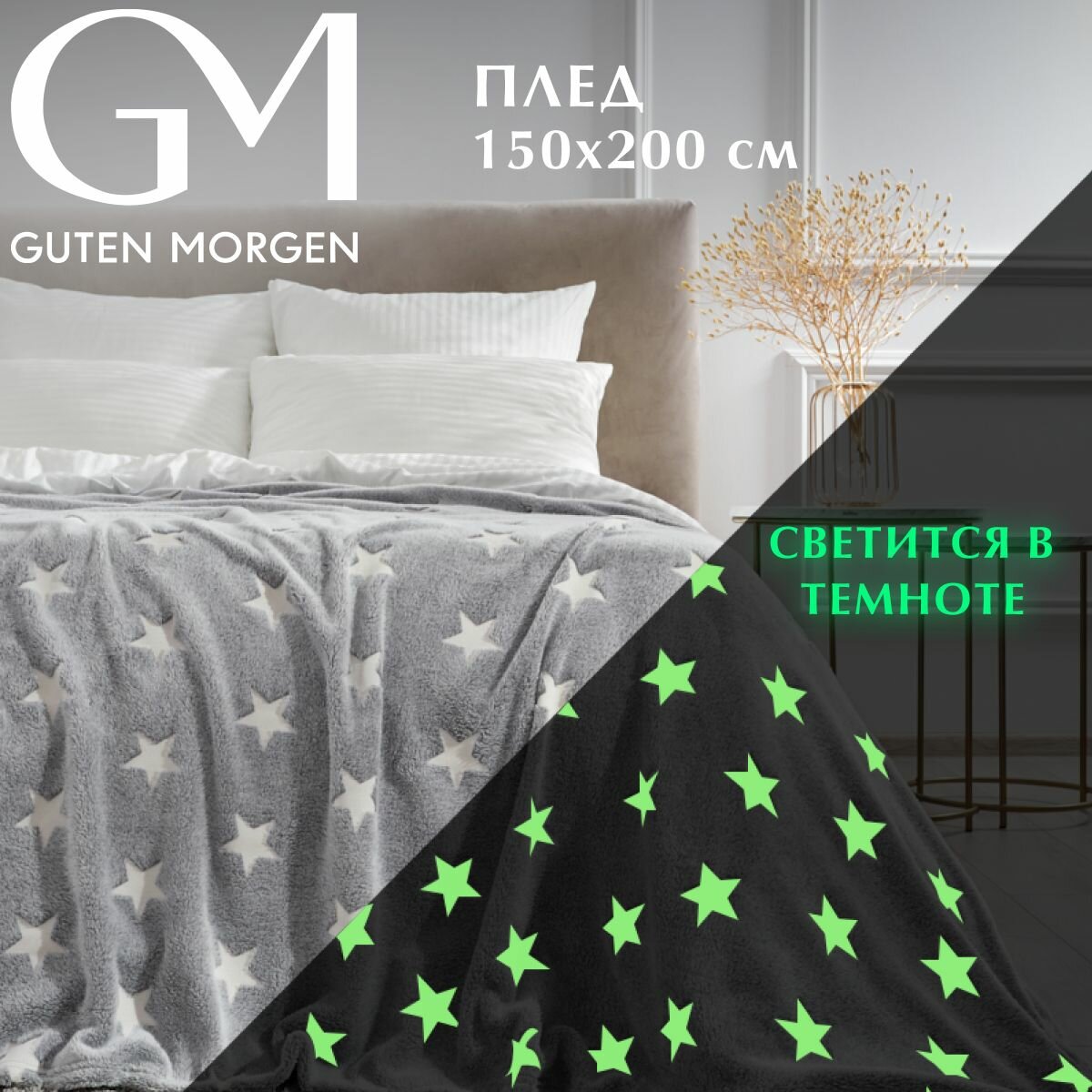 Плед на кровать/150х200/велсофт/1,5 спальный/плед на диван/Guten Morgen