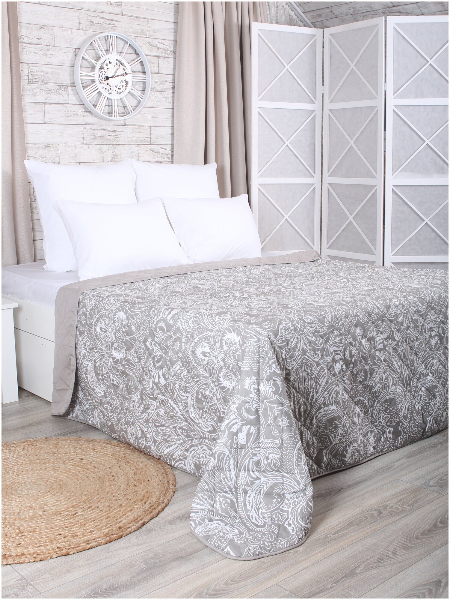 Купить Покрывало двустороннее стеганное от бренда Mona Liza "Ажур" Серо-беж 200*220