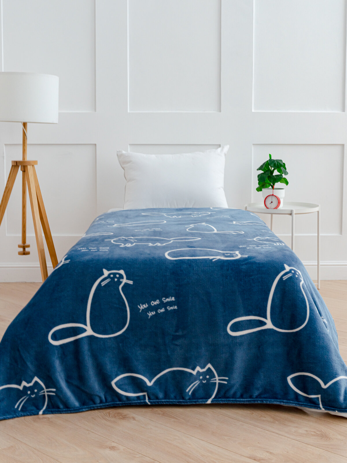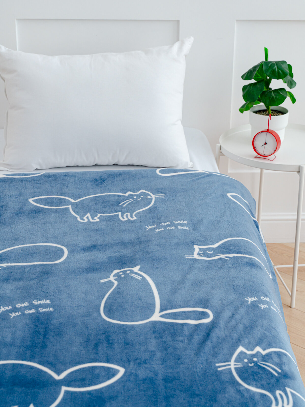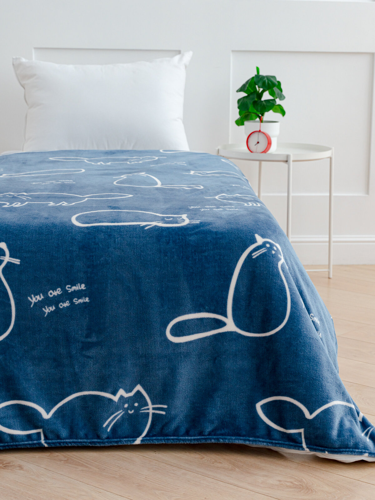 Купить Плед 150х200 Павлина Коты на синем, 1,5-спальный
