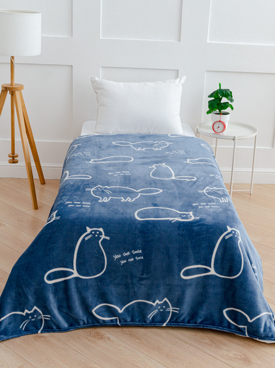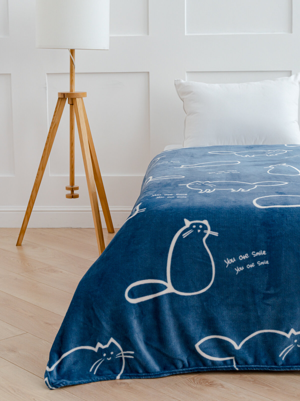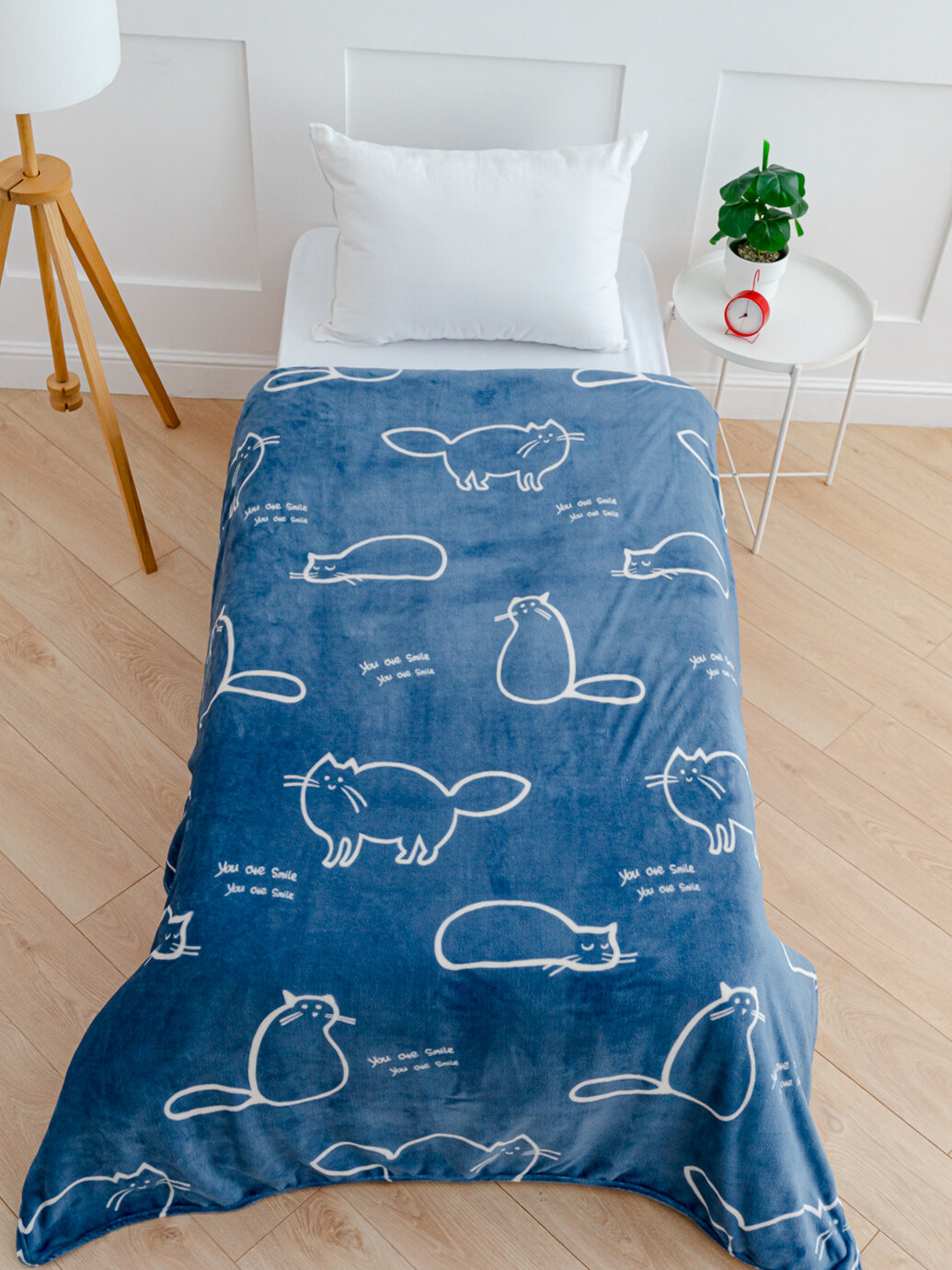 Купить Плед 150х200 Павлина Коты на синем, 1,5-спальный