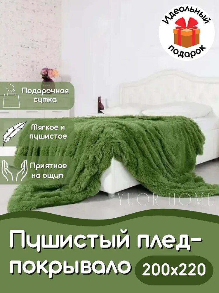 Плед "Травка" с длинным ворсом , Искусственный мех, 200х220 см