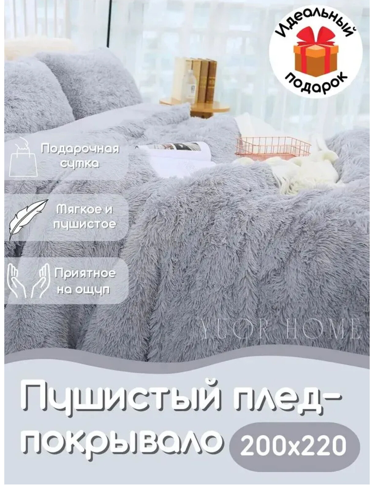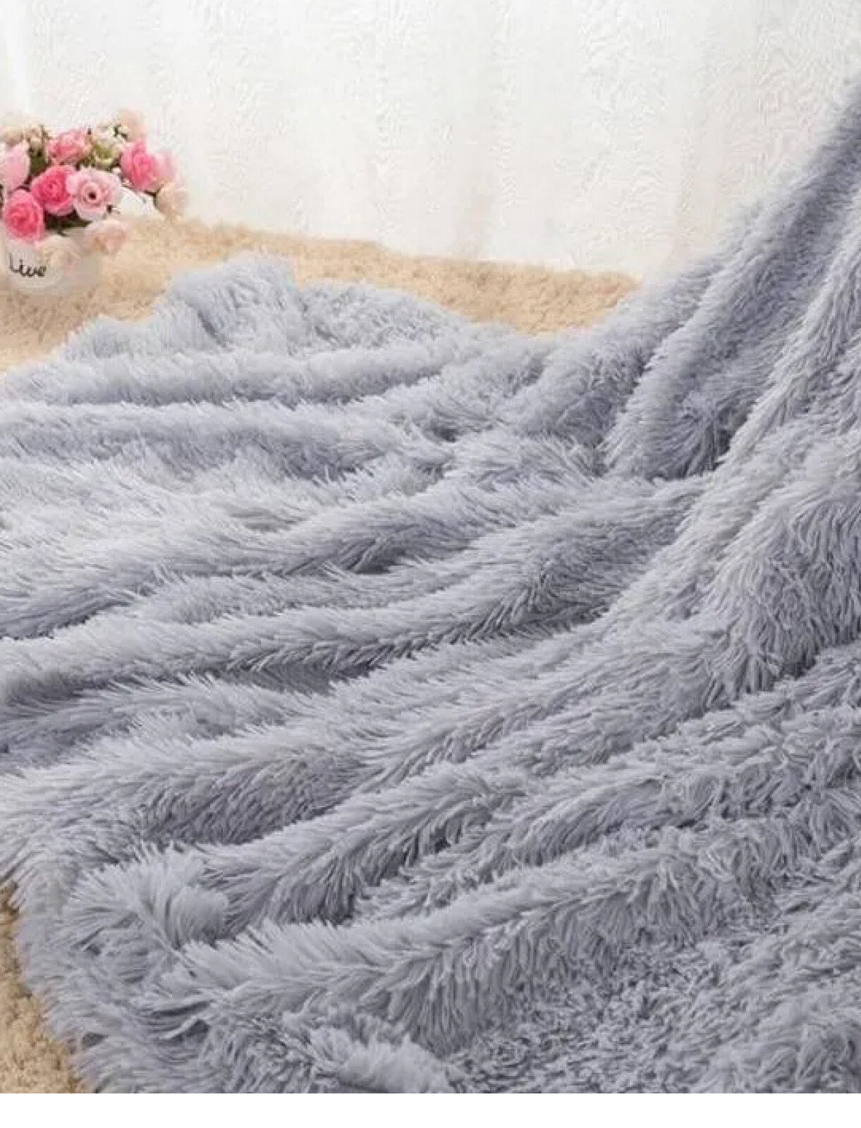 Плед "Травка" с длинным ворсом , Искусственный мех, 200х220 см Пыльно-серый