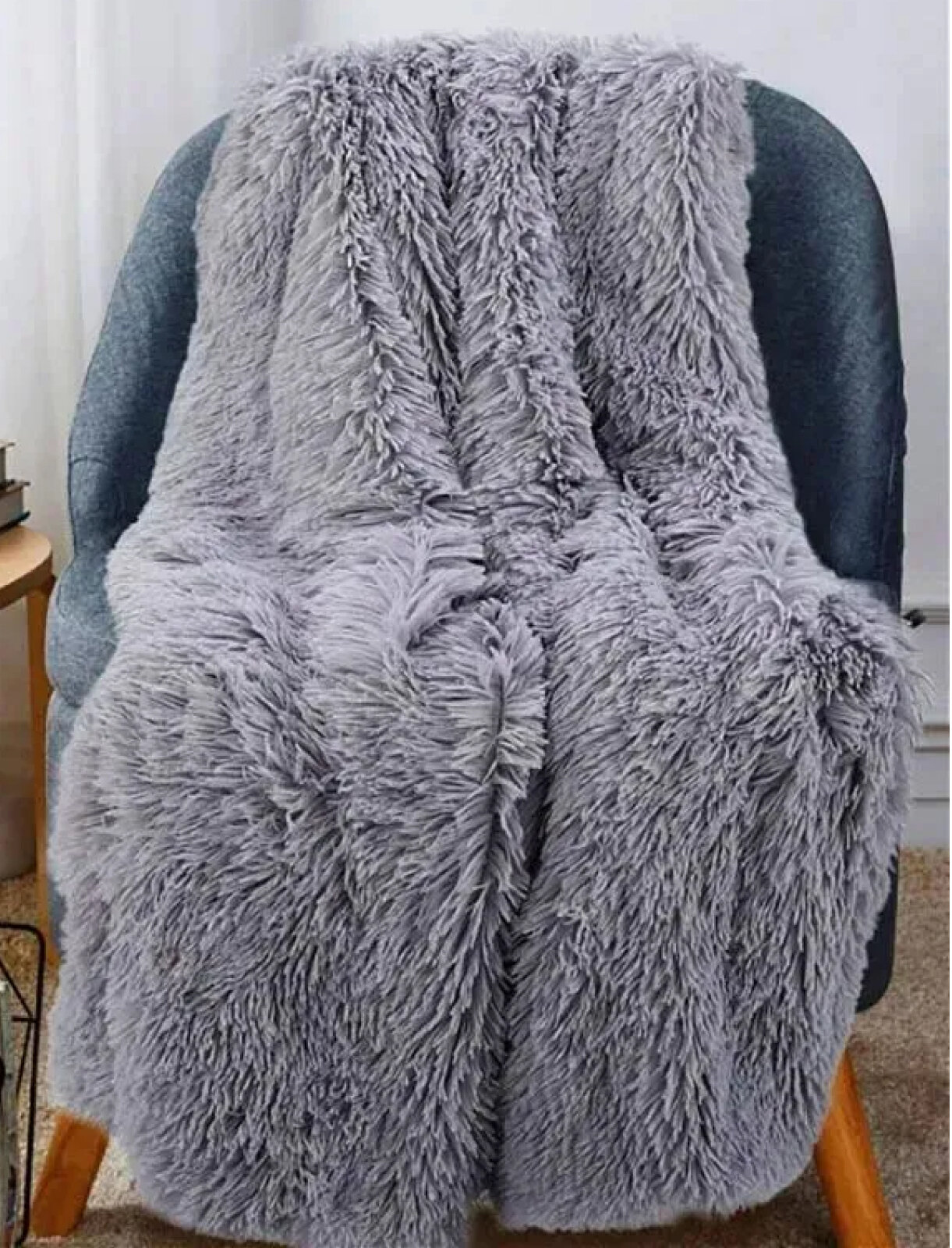 Плед "Травка" с длинным ворсом , Искусственный мех, 200х220 см тёмно-серый