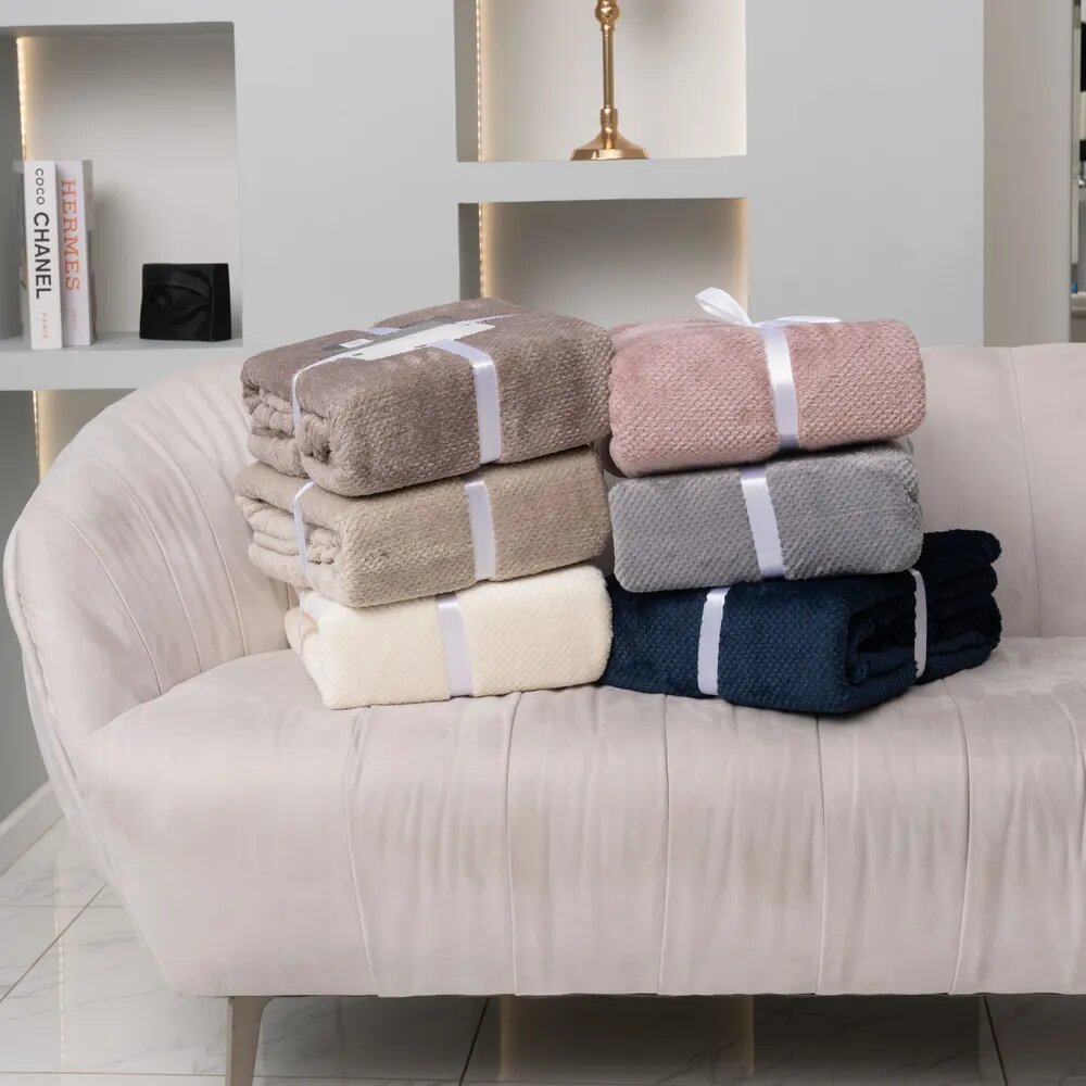 Плед велсофт 160х220 см фактурный однотонный, Casa Conforte Нонна бежевый