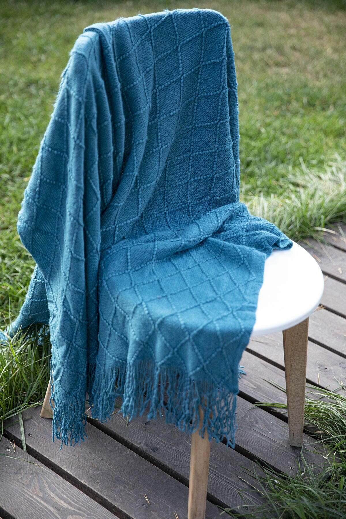 Купить Декоративное плед покрывало в скандинавском стиле, вязаный однотонный плед на кресло диван и кровать, DAO HOME, 170х130 см - Синий изумруд