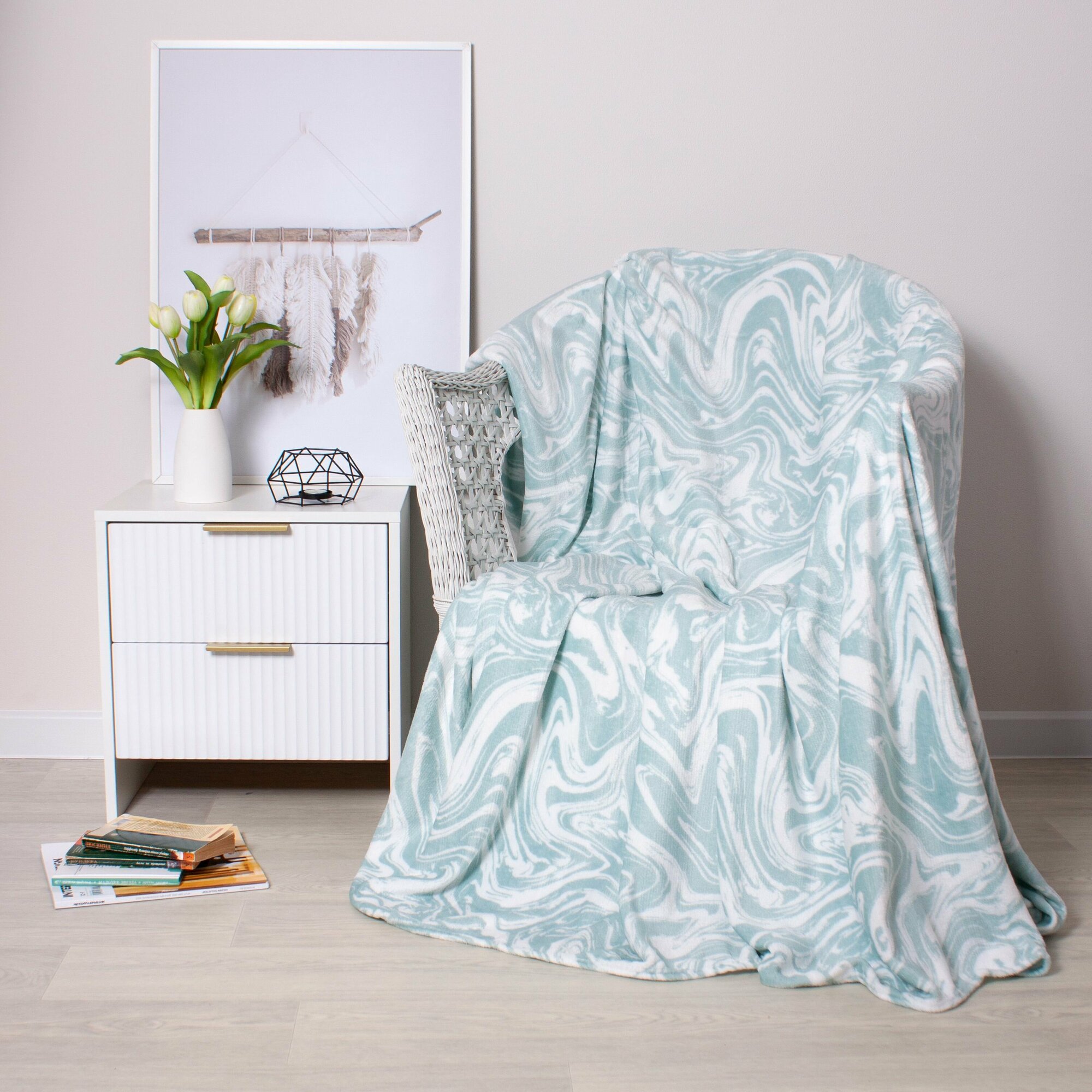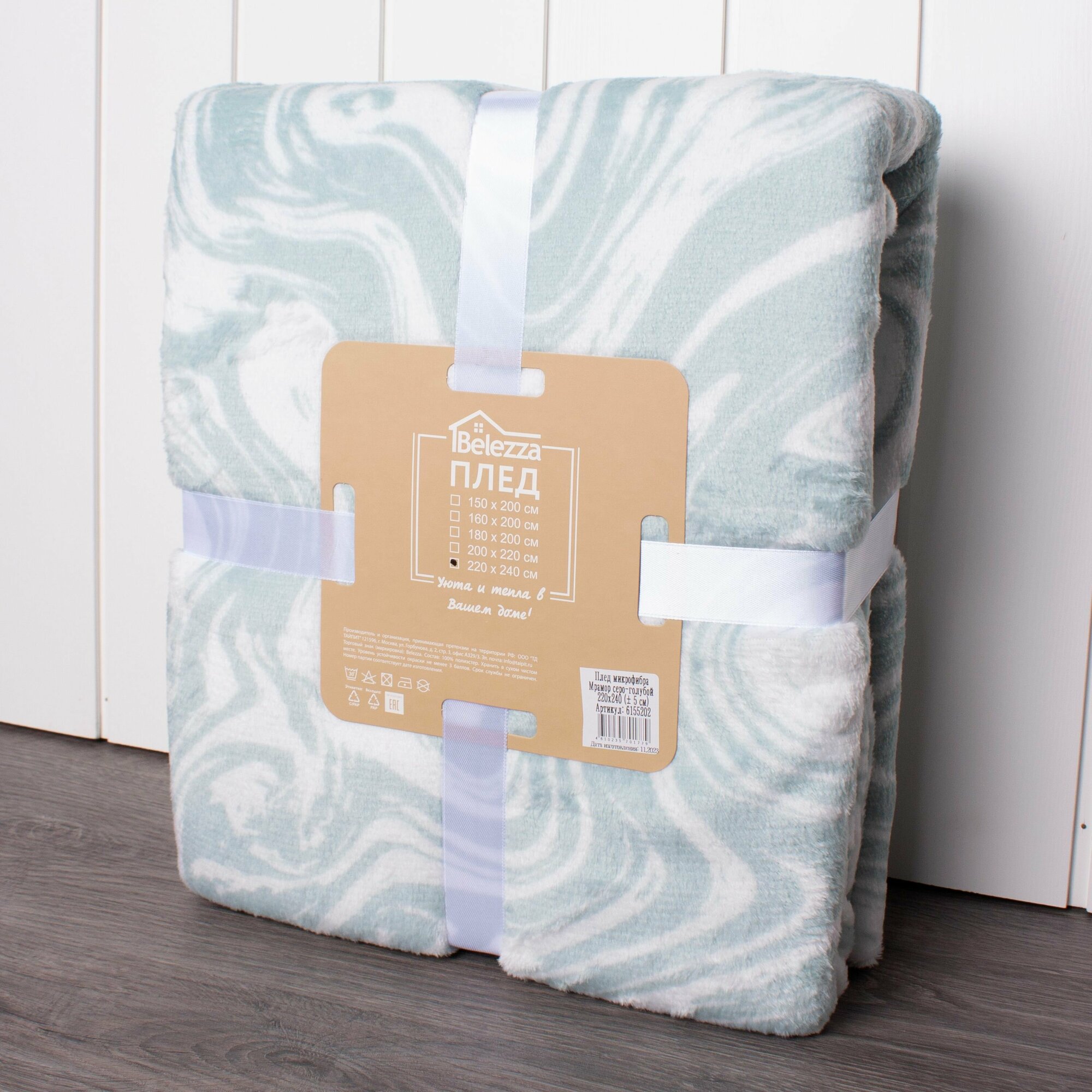 Купить Плед-покрывало велсофт 220х240 см (евро макси) с принтом, Casa Conforte Камелия Мрамор серо-голубой