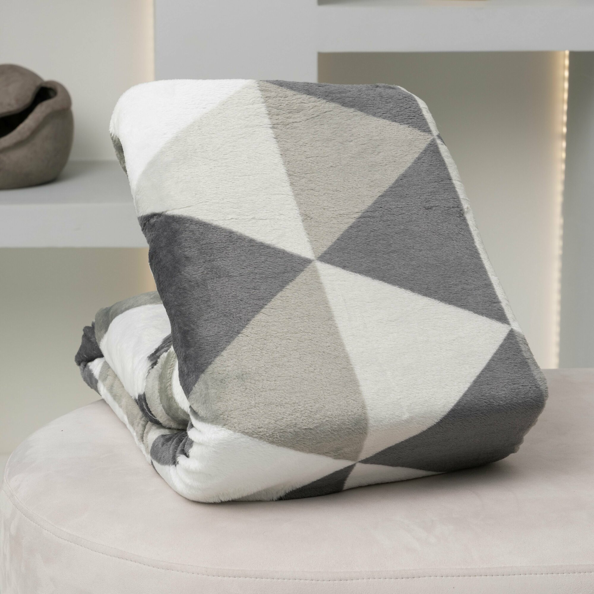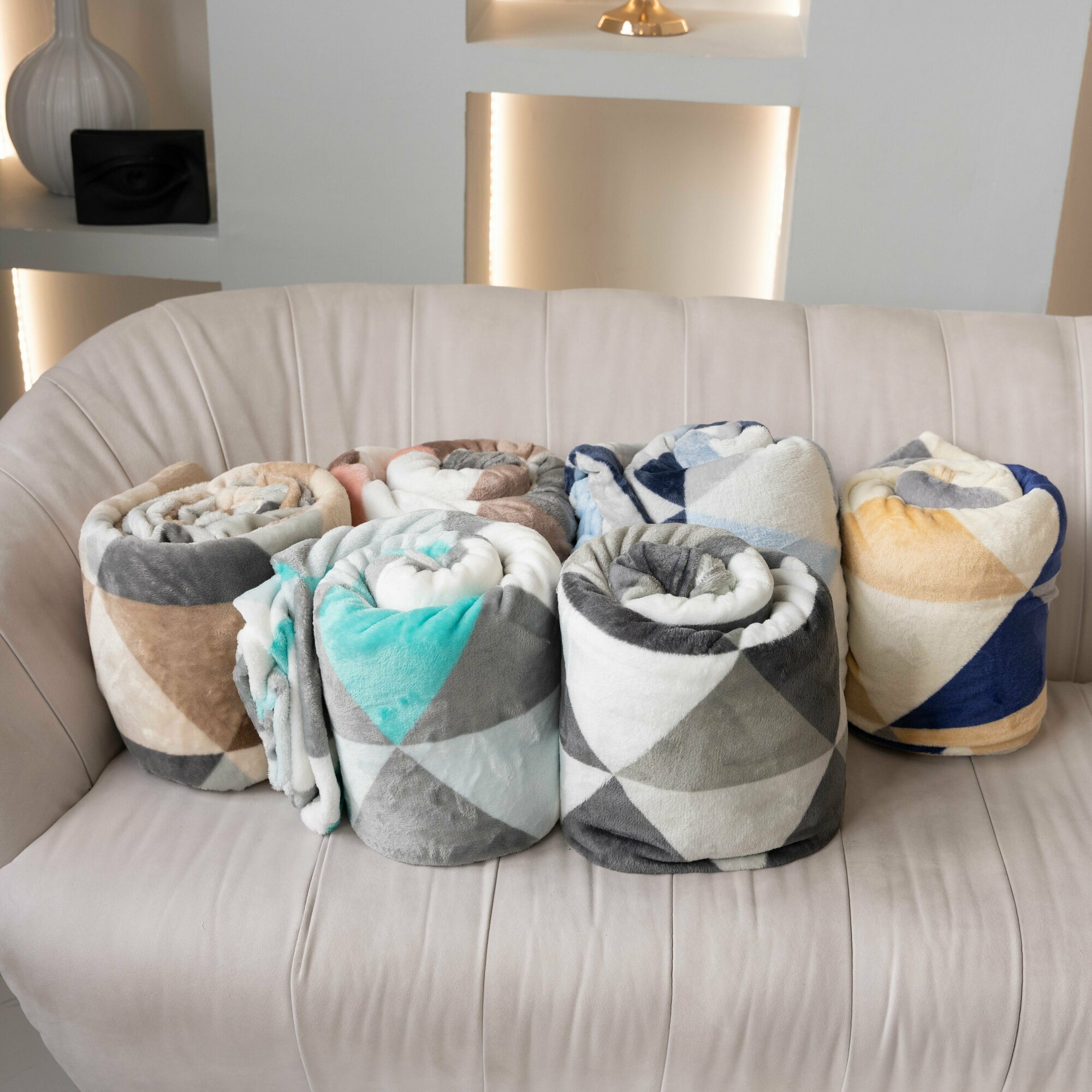 Мягкий плед на большую кровать, 220 х 240 см, серо-синий, геометрический рисунок