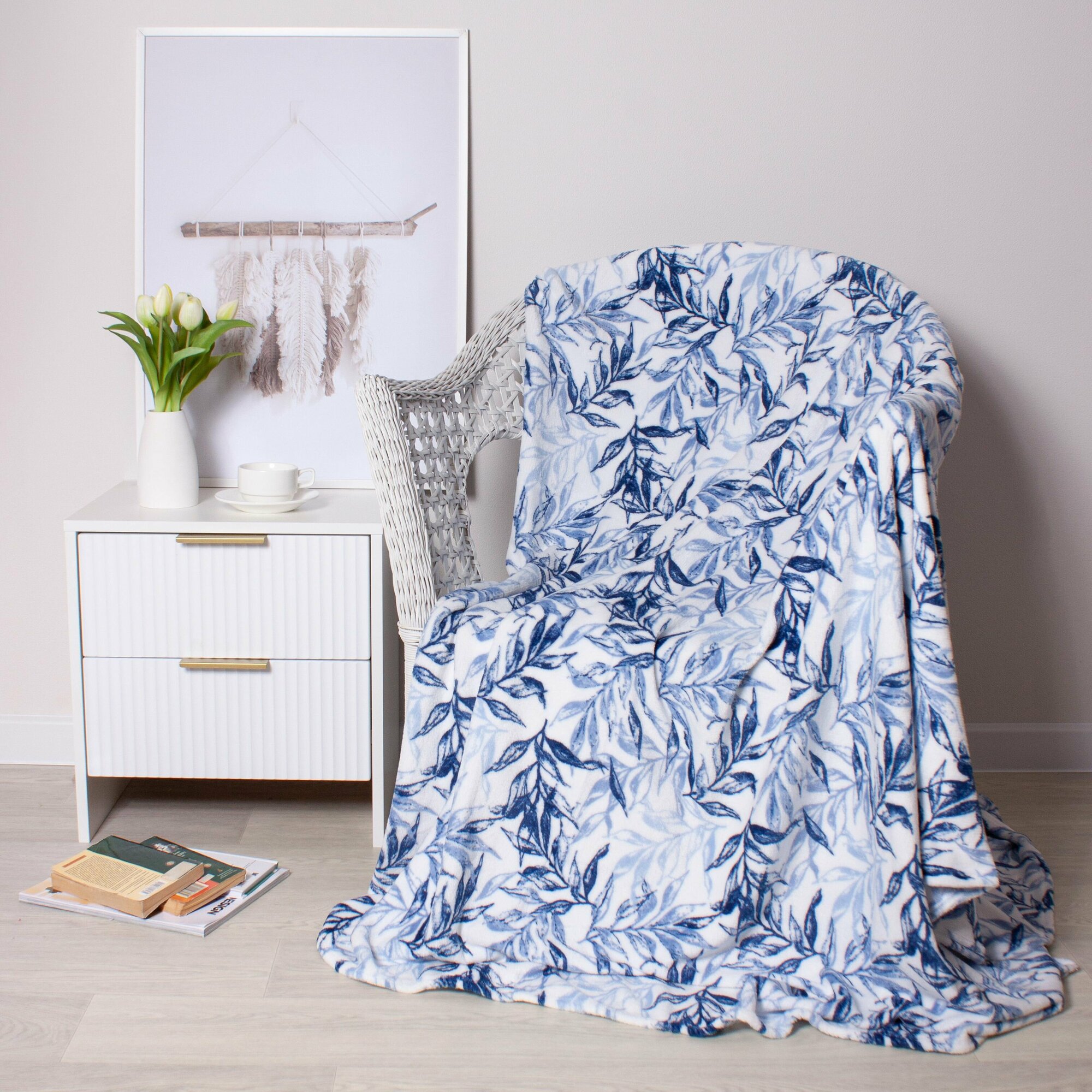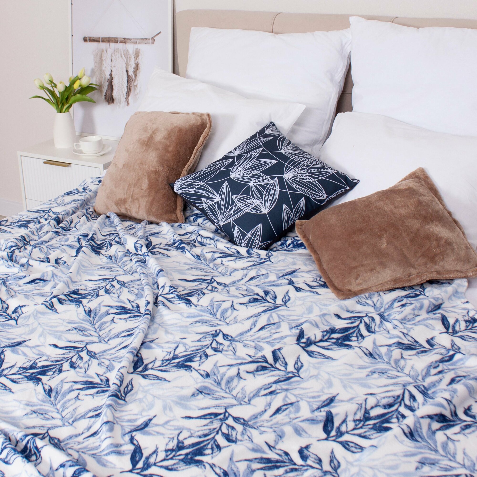 Плед-покрывало велсофт 150х200 см плюшевый с принтом, Casa Conforte Камелия, синий/бежевый