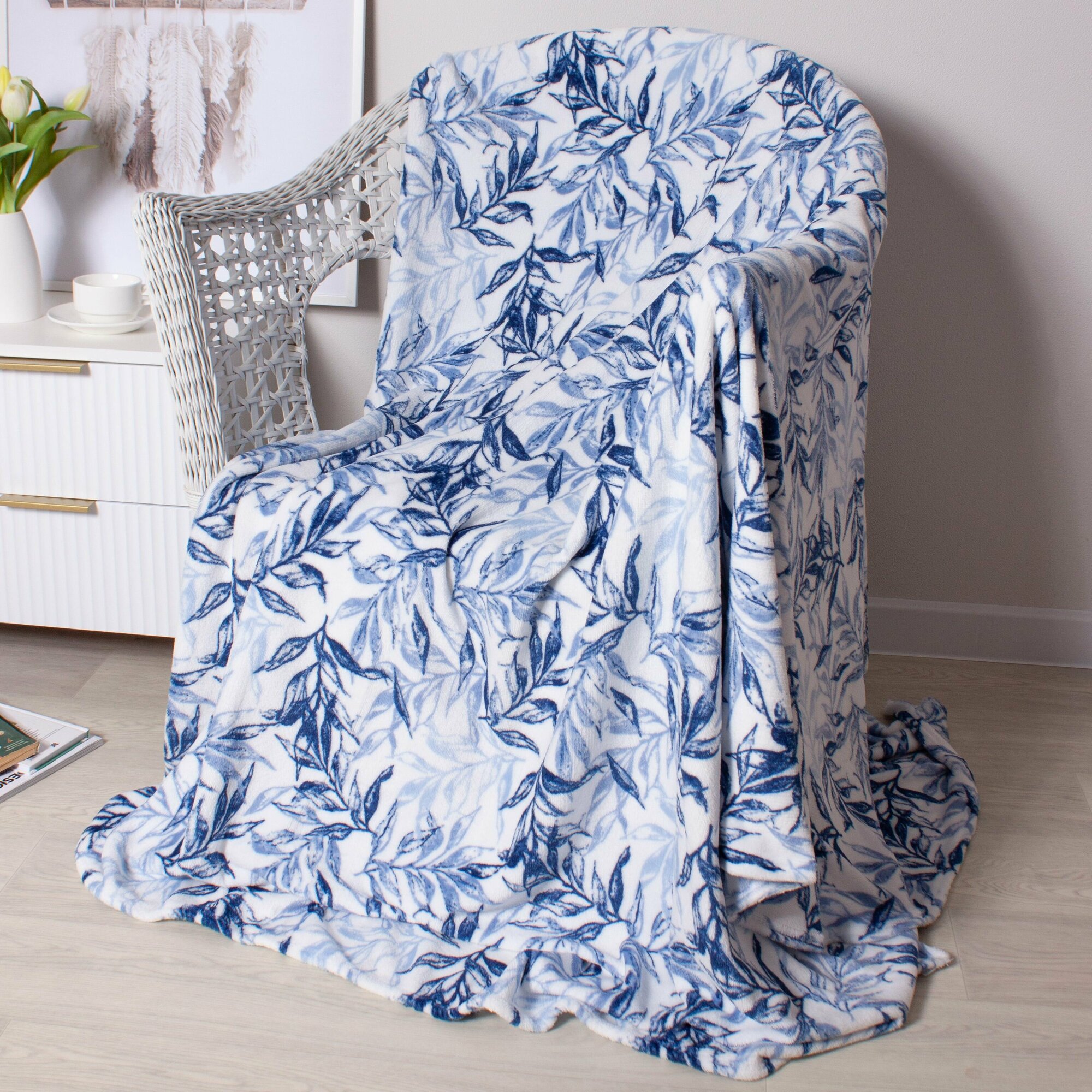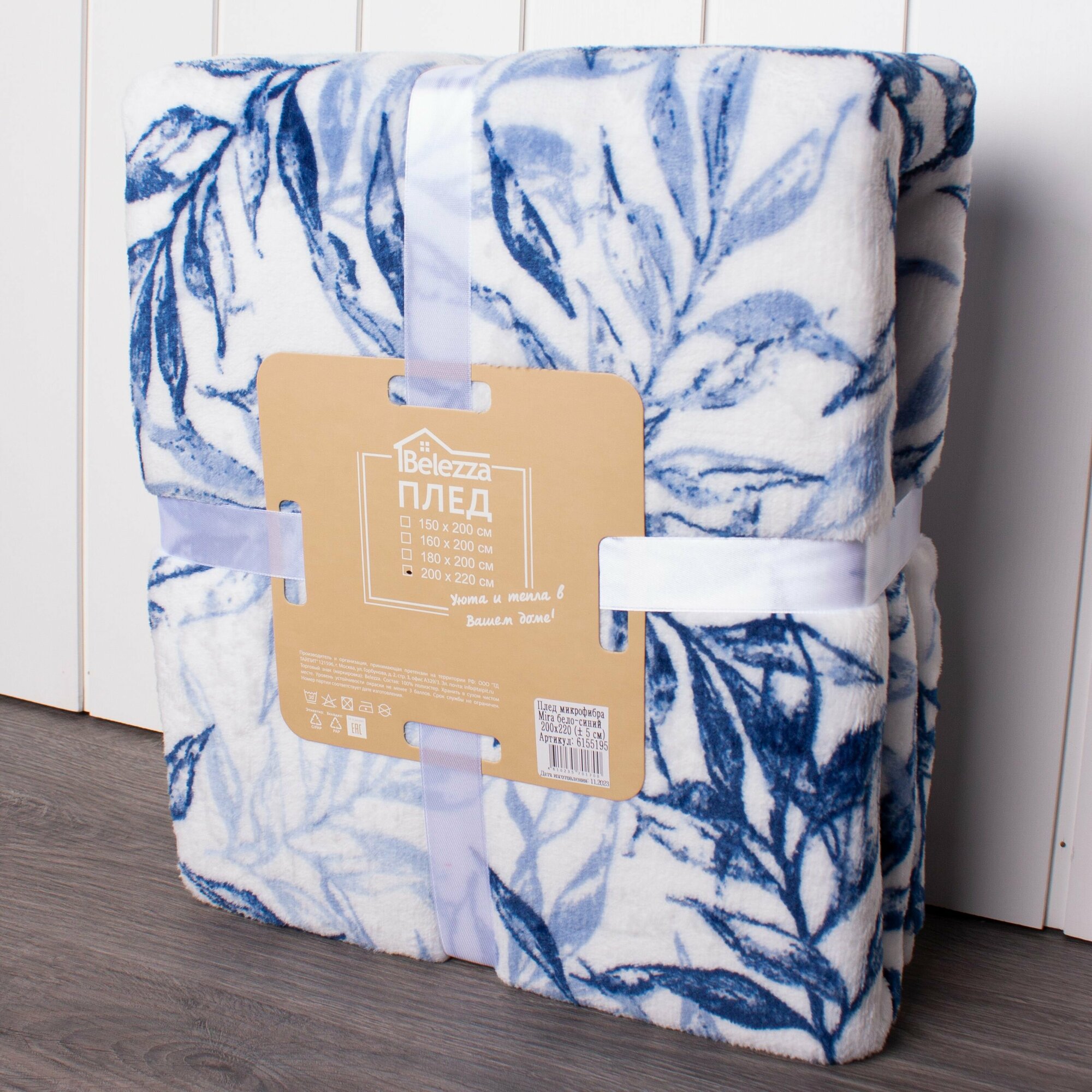 Купить Плед-покрывало велсофт 200х220 см (евро) с принтом, Casa Conforte Камелия Мира сине-белый