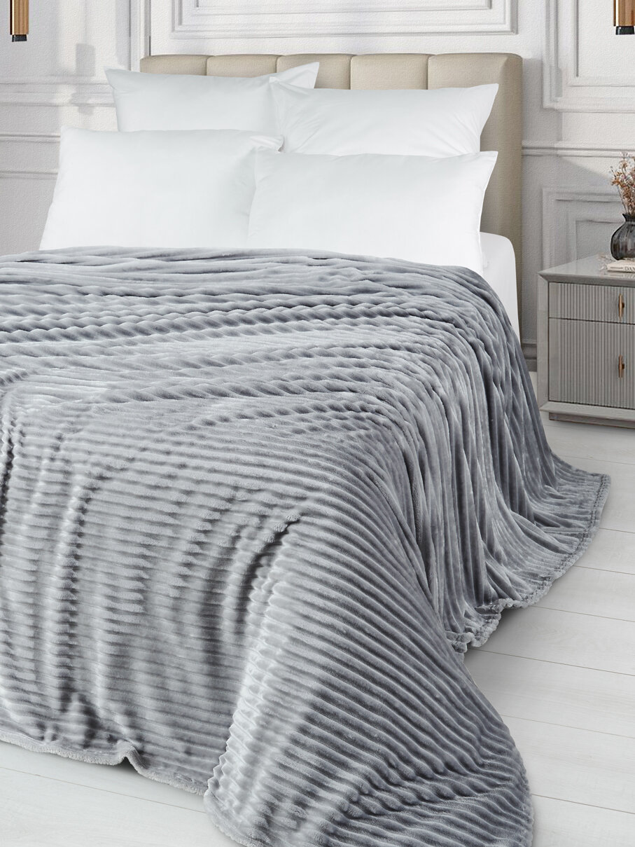 Купить Плед-покрывало "Stretch Jersy" 200 x 220, мягкий и теплый, велсофт, светло-серый