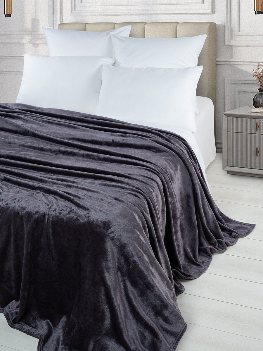 Купить Плед-покрывало Stretch Jersy 150 x 200, мягкий и теплый, велсофт, темно-серый