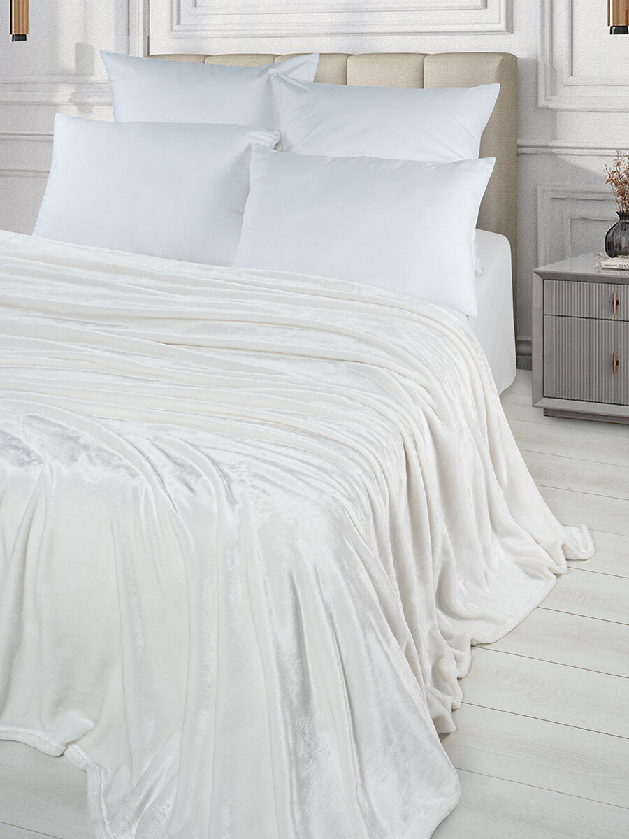 Купить Плед-покрывало "Stretch Jersy" 200 x 220, мягкий и теплый, велсофт, экрю