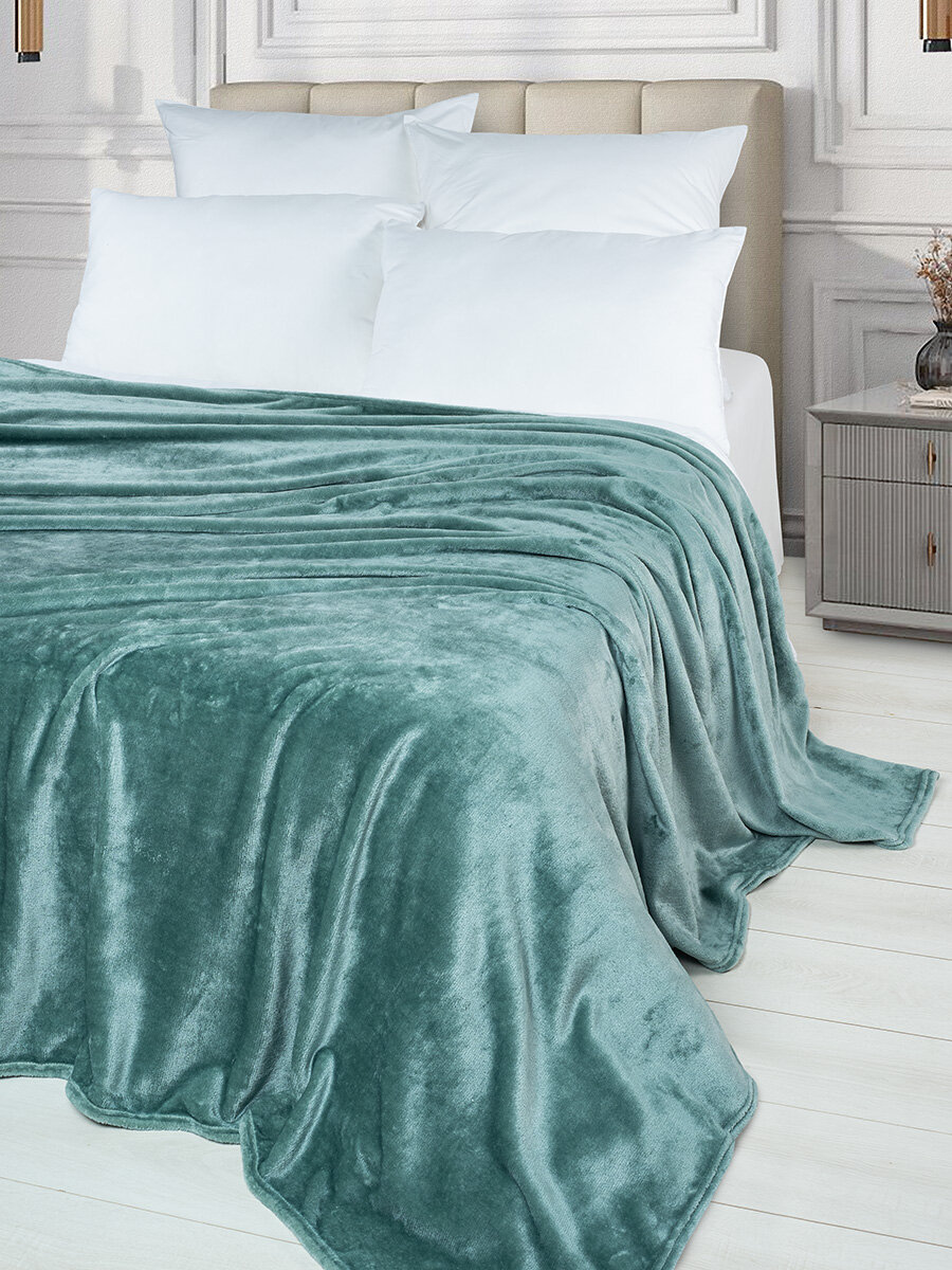 Плед-покрывало "Stretch Jersy" 200 x 220, мягкий и теплый, велсофт, шалфей