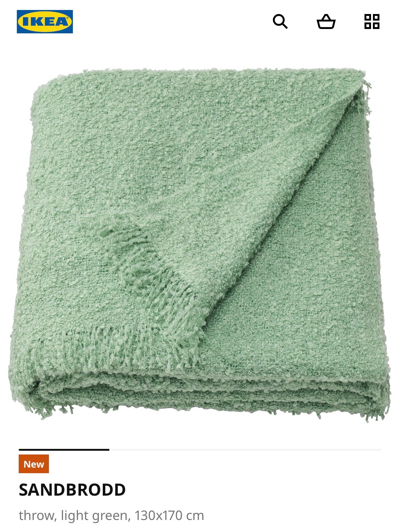 Плед IKEA SANDBRODD, светло-зеленый, 130x170 см интересное: