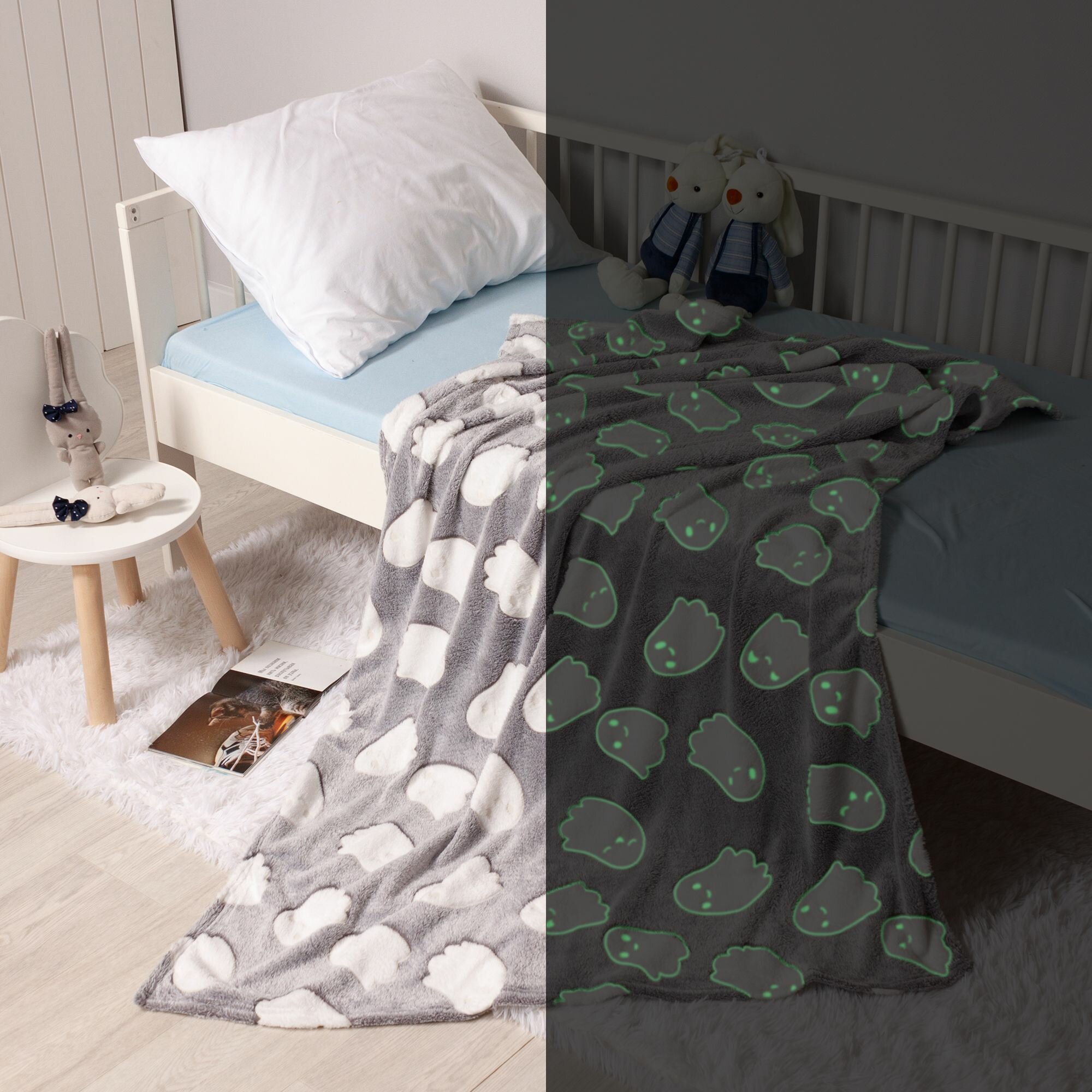 Купить Плед велсофт детский 100х150 см (светится в темноте) Стелла, привидение / серый
