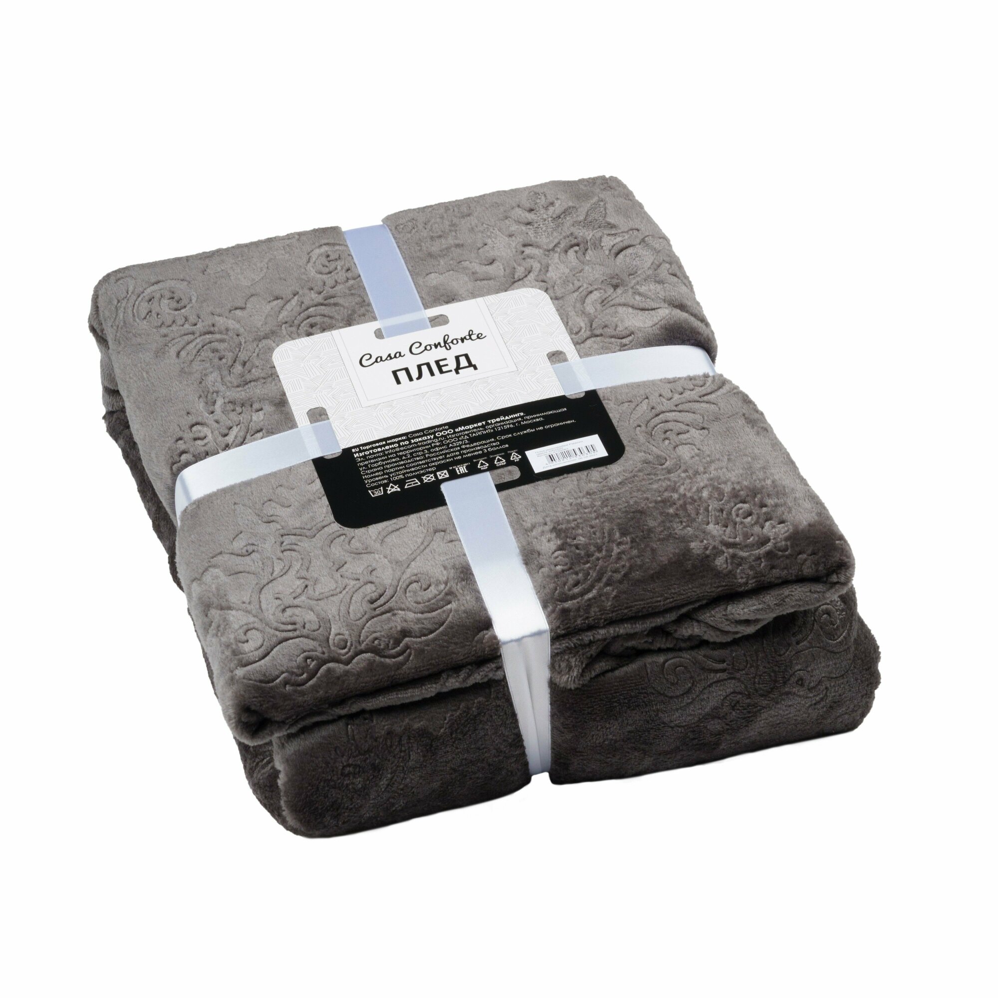 Купить Плед велсофт фактурный 200х220 см, покрывало евро, Casa Conforte Палаццо, однотонный графитовый серый
