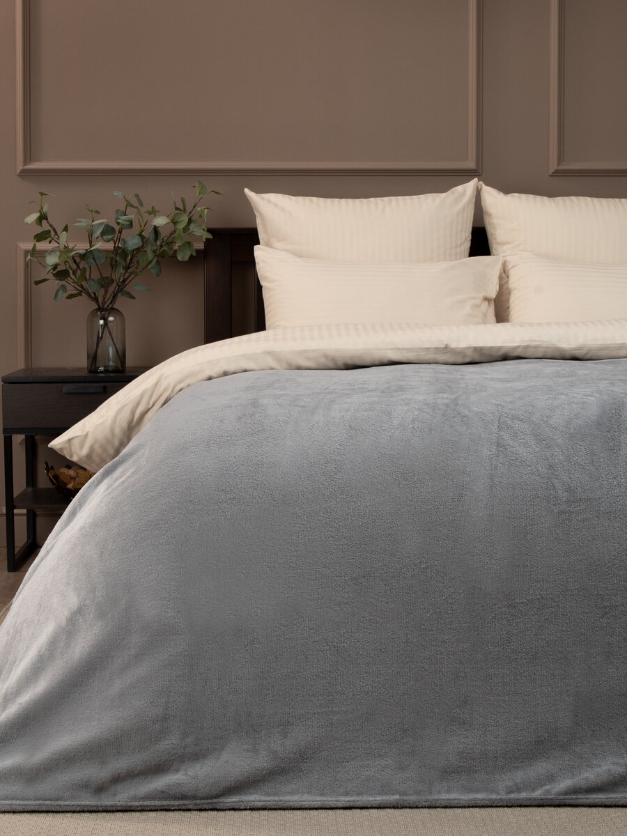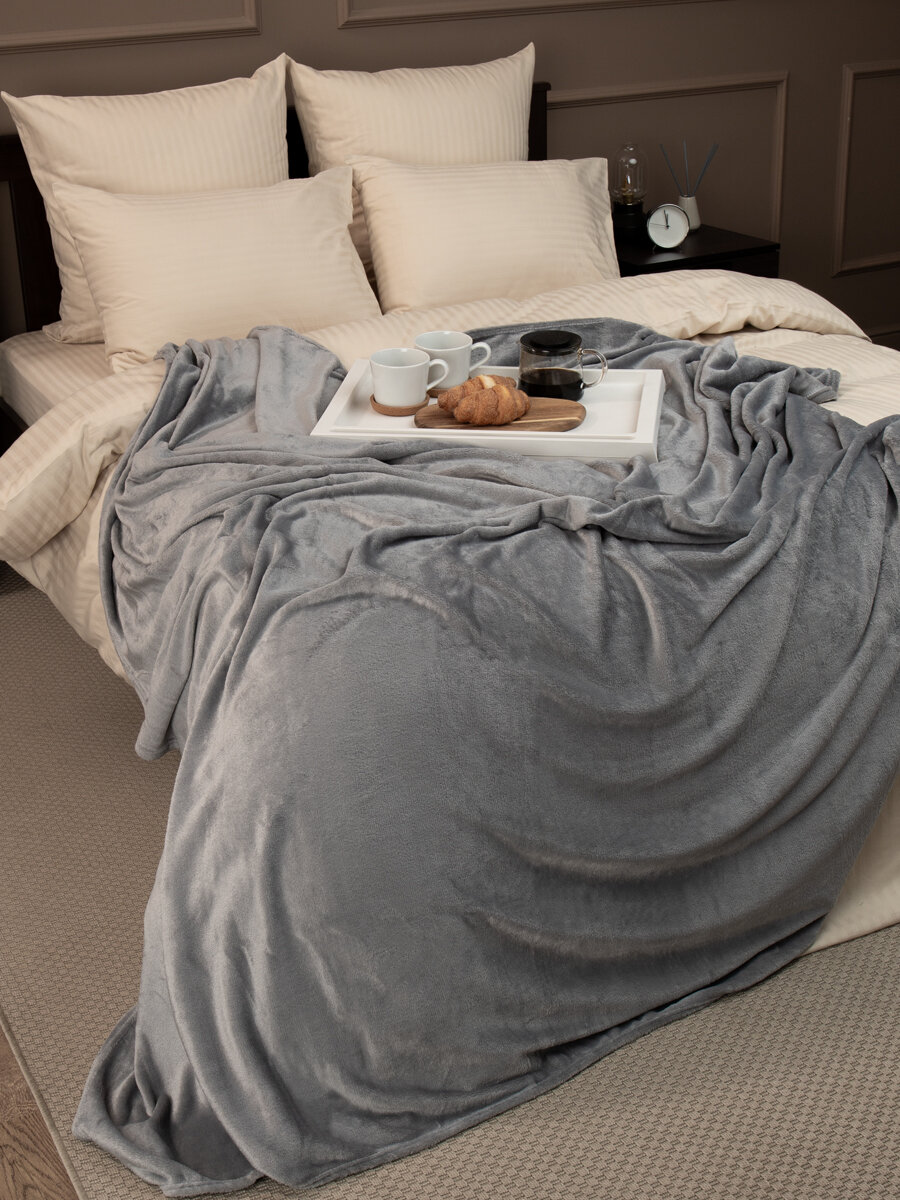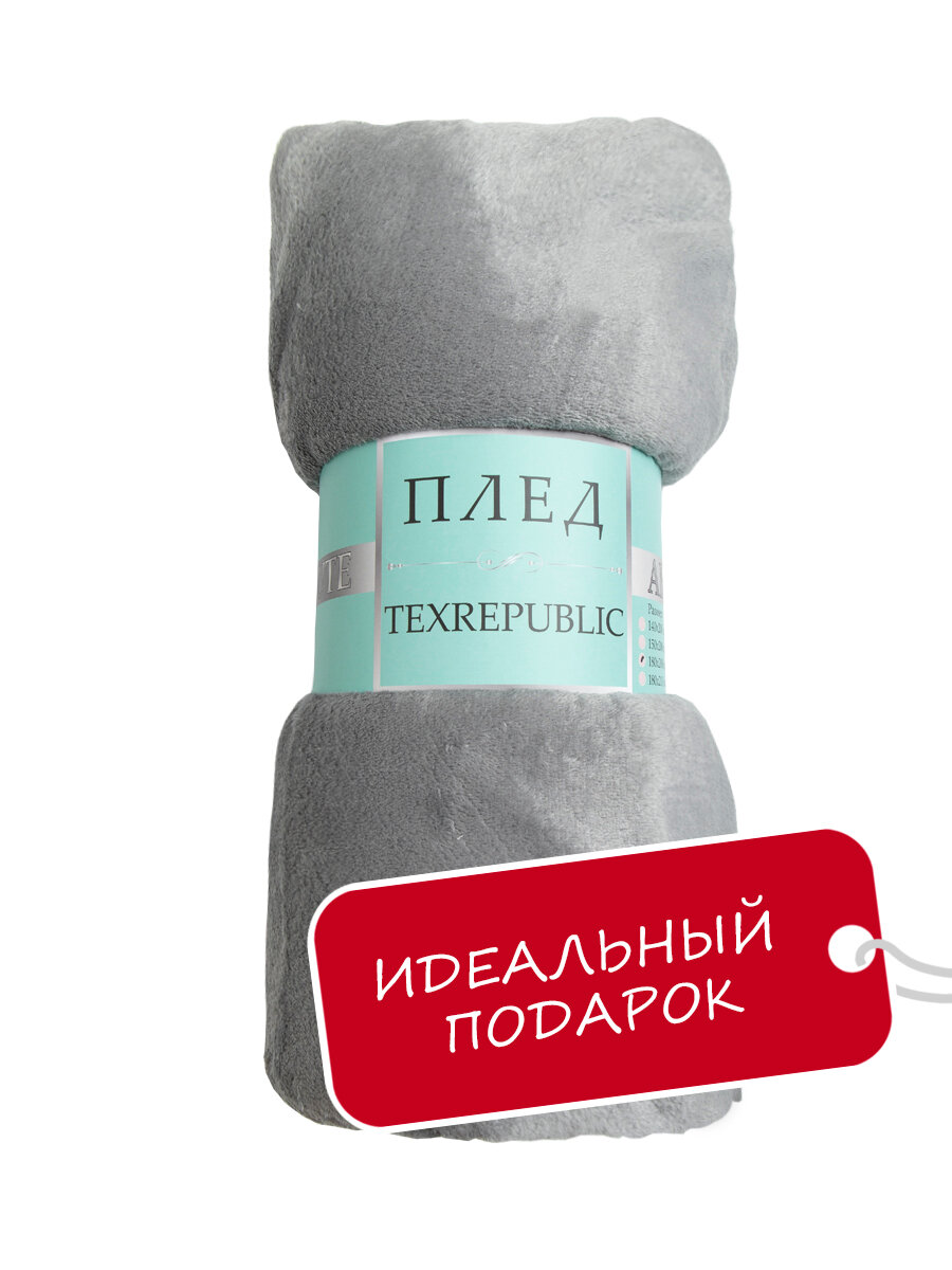 Плед TexRepublic Absolute 180х200 см, 2 спальный, фланелевый, покрывало на диван, теплый, мягкий, однотонный серый интересное: