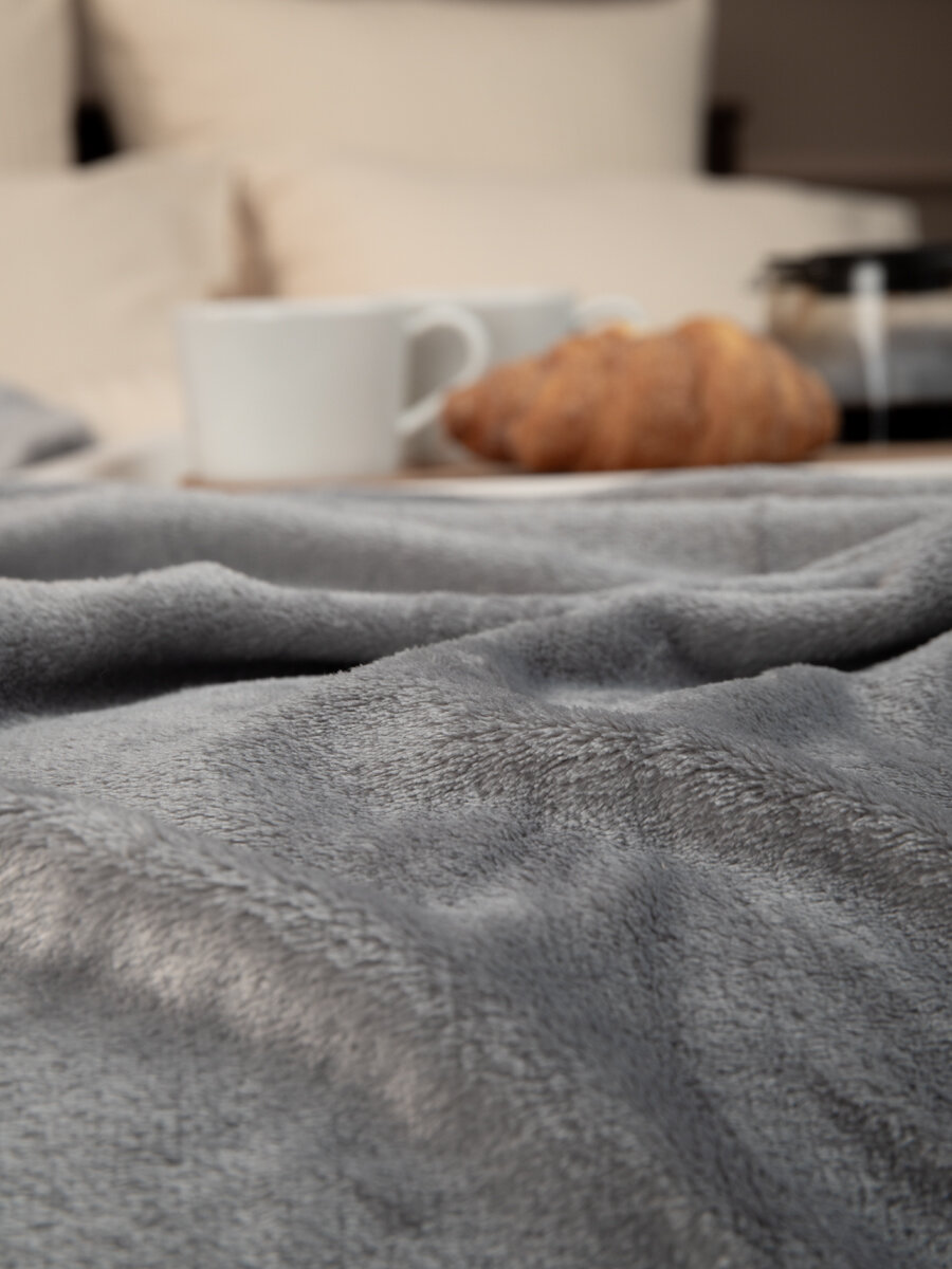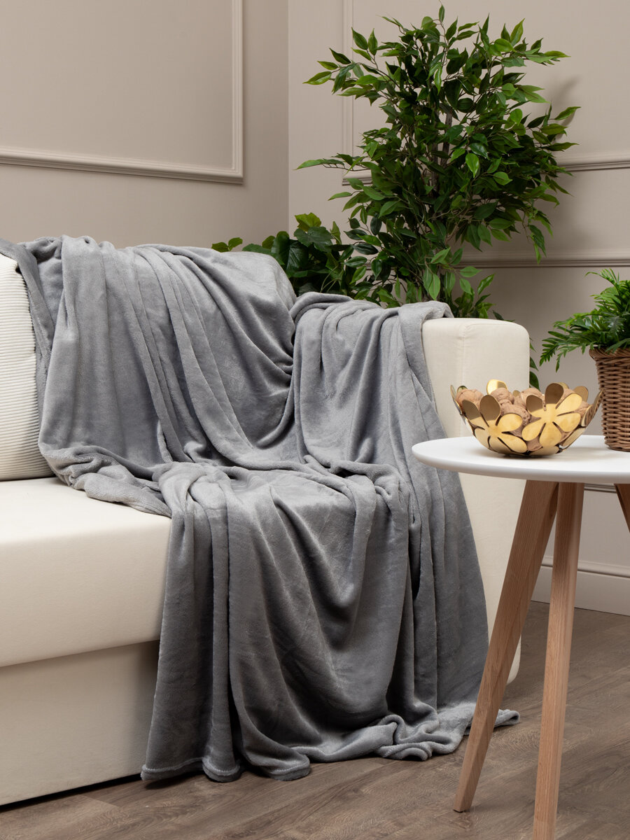 Купить Плед TexRepublic Absolute 180х200 см, 2 спальный, фланелевый, покрывало на диван, теплый, мягкий, однотонный серый