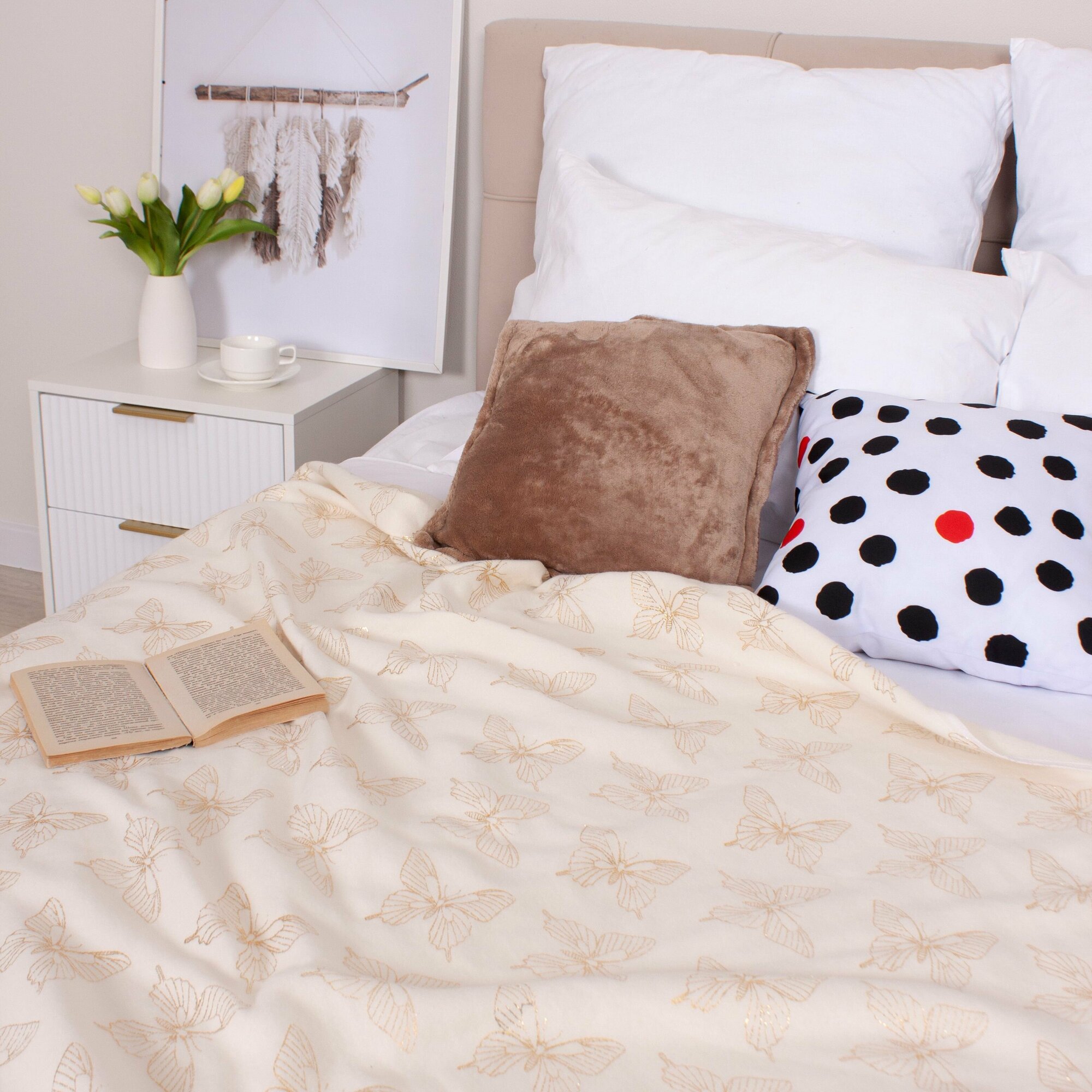 Купить Плед флисовый 130х160 см Casa Conforte Бабочки, кремовый
