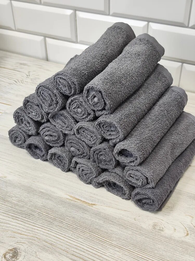 Купить Салфетка Махровая 30х30 (20 шт.) Серая из 100% Хлопка, маленькое полотенце для рук/лица, посуды, сервировки стола
