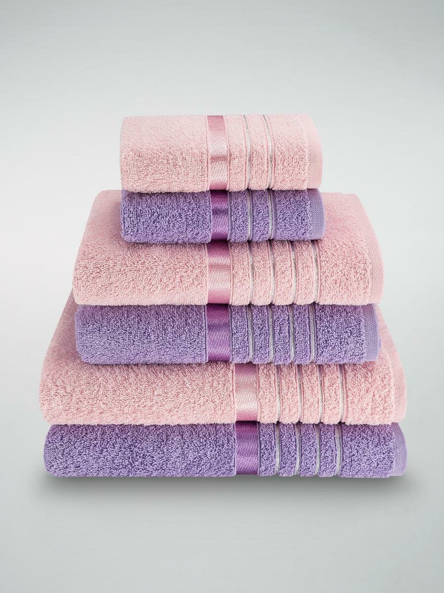 Набор полотенец махровых Diana "Эваланж", 6 шт, Сирень/Розовый, 100% хлопок
