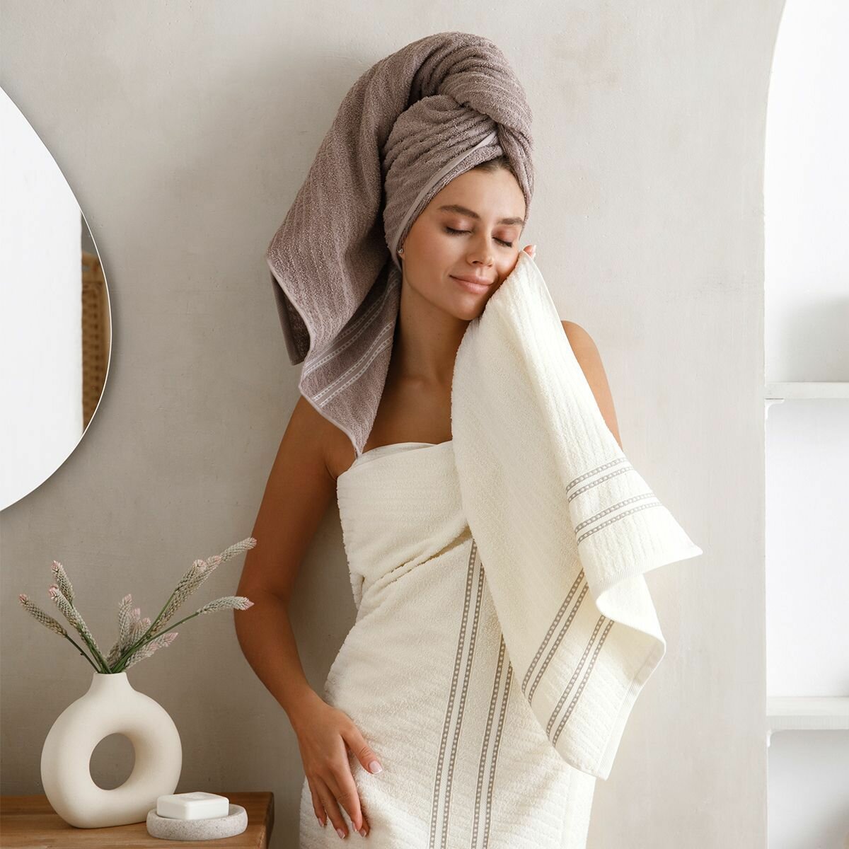 Набор полотенец махровых Diana "Элегия", 4 шт, Кориандр/Молочный, 100% хлопок