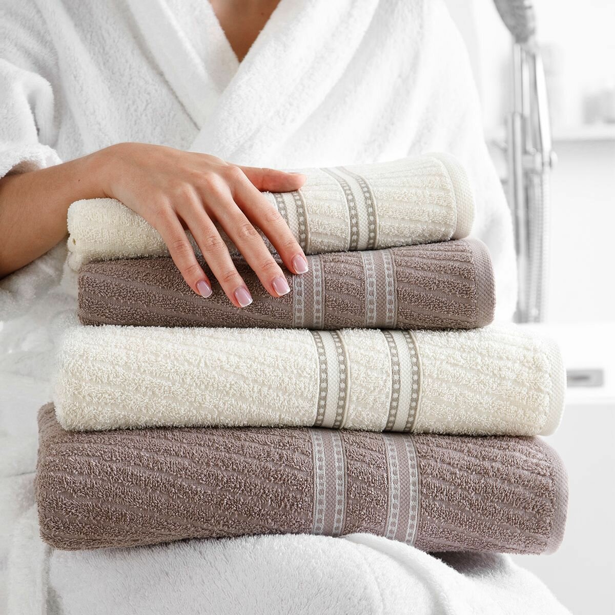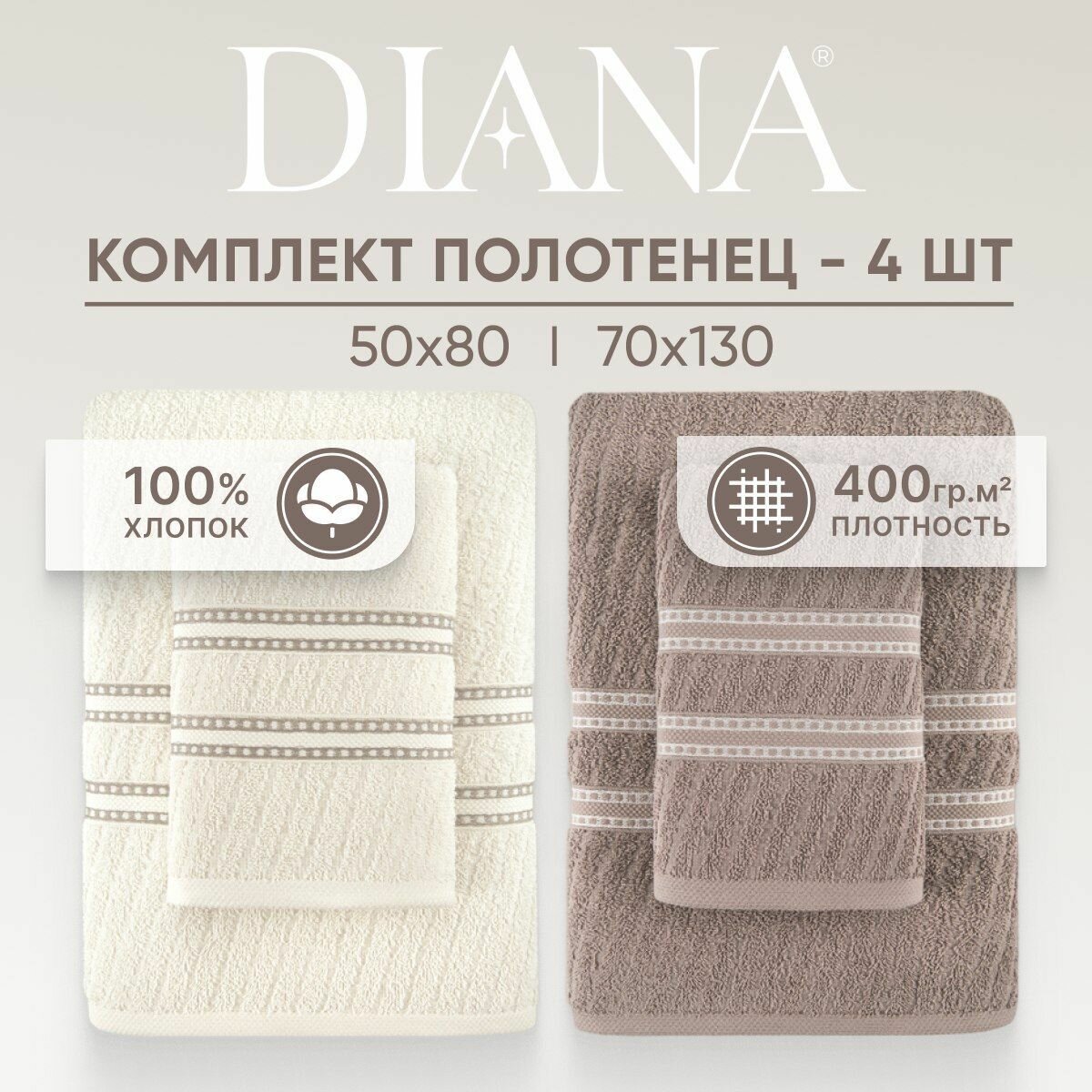 Набор полотенец махровых Diana "Авеню", 4 шт. Цикорий/Молочный, 100% хлопок