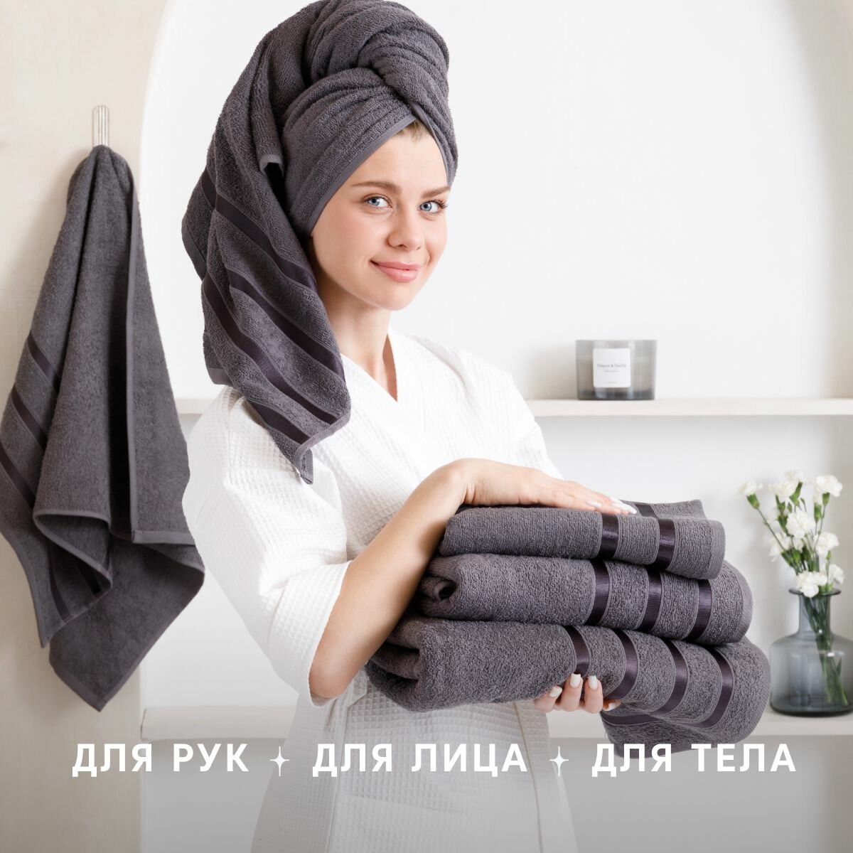 Набор полотенец махровых Diana "Авеню", 4 шт. Черный жемчуг/Туманный серый, 100% хлопок