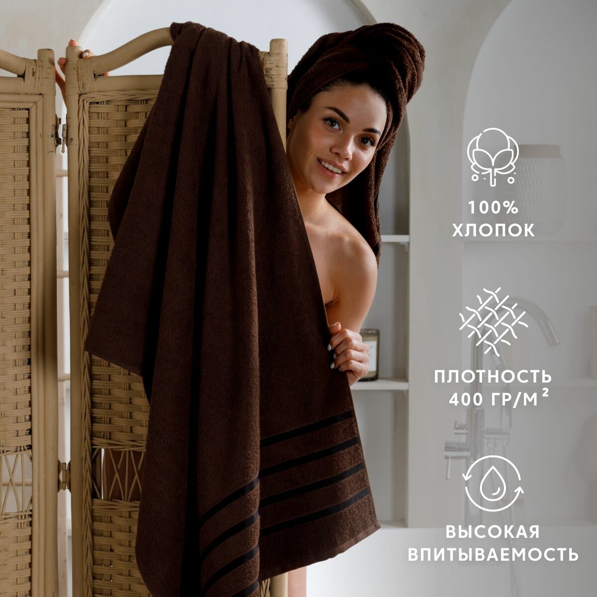 Набор полотенец махровых Diana, Авеню, 3 шт 30х50, 50х90, 70х140, 100% хлопок, Темное какао