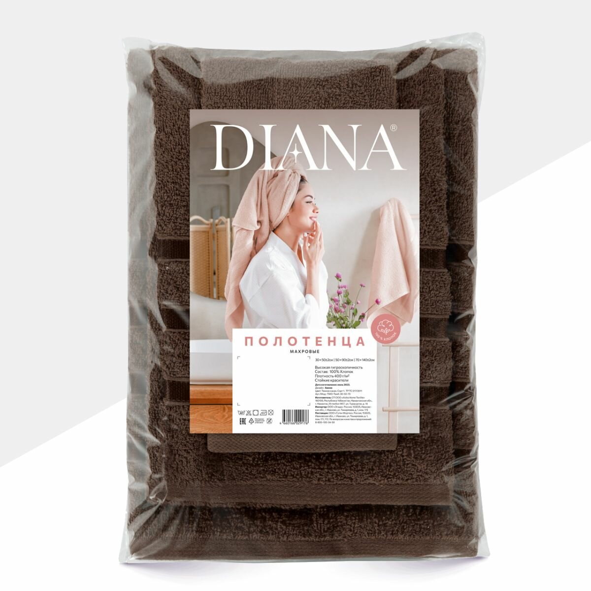 Купить Набор полотенец махровых (30х50 см, 50х90 см, 70х140 см), Diana, цвет: Темное какао