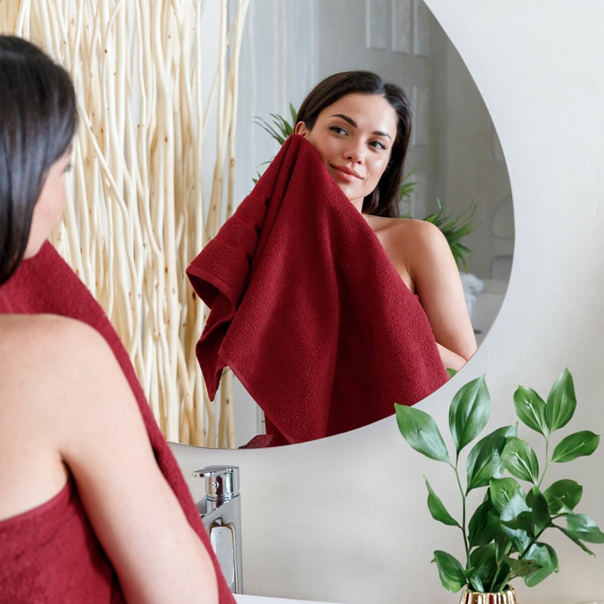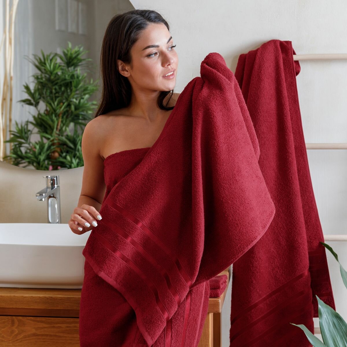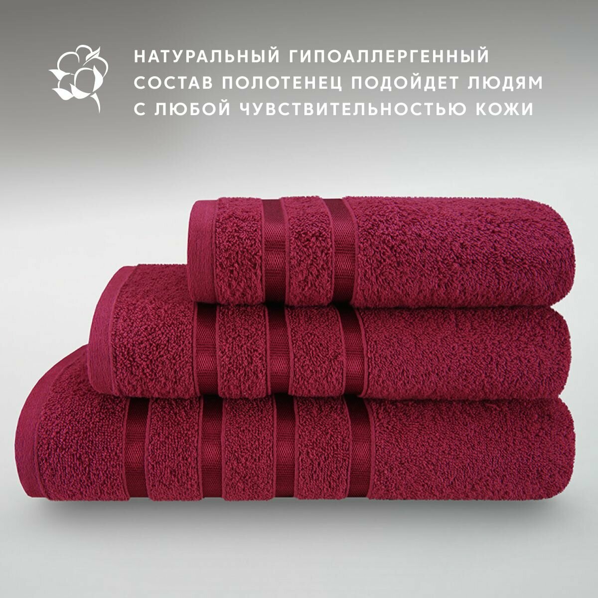 Набор полотенец махровых (30х50 см, 50х90 см, 70х140 см), Diana, цвет: Винный