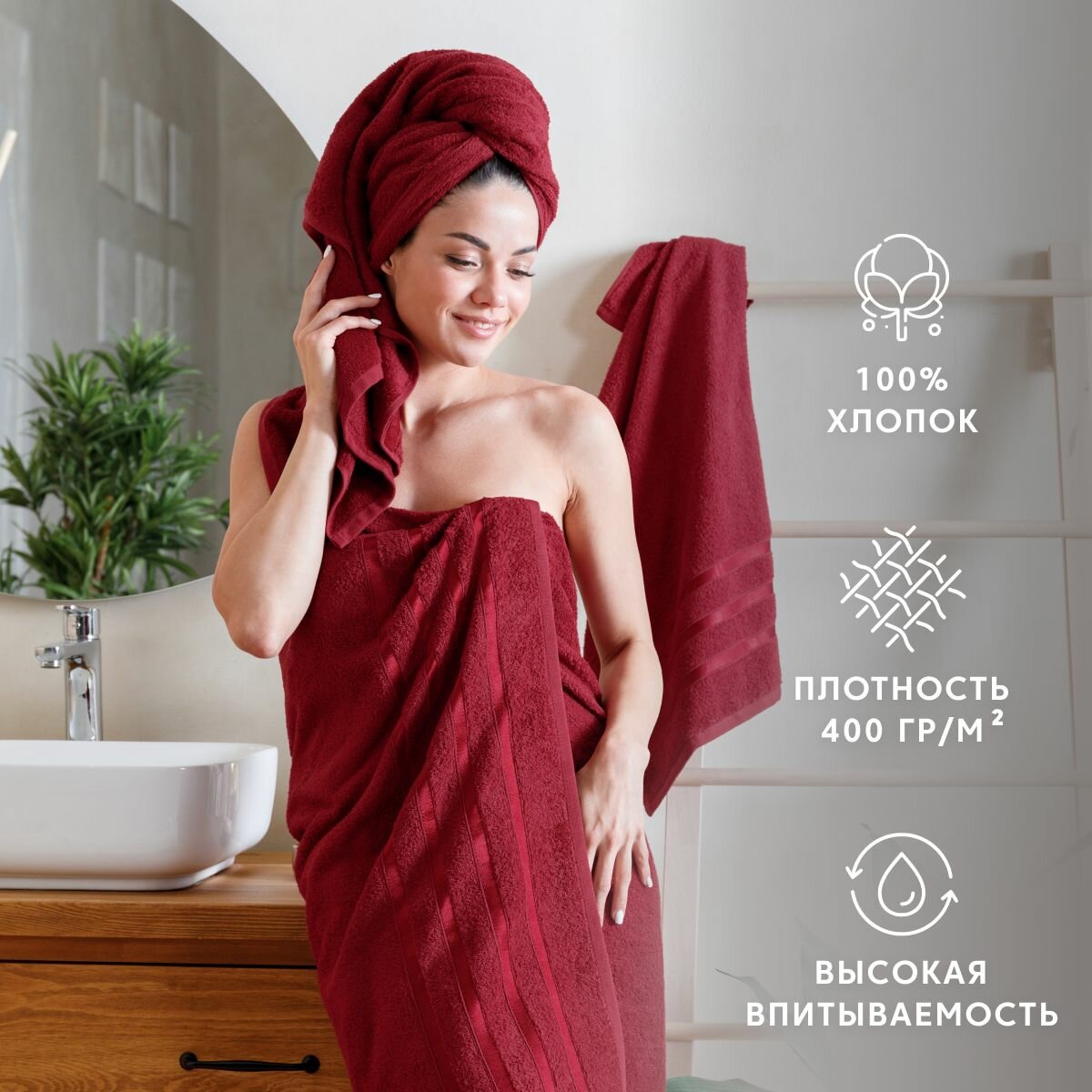 | Размеры банного полотенца | 70х140 cм |