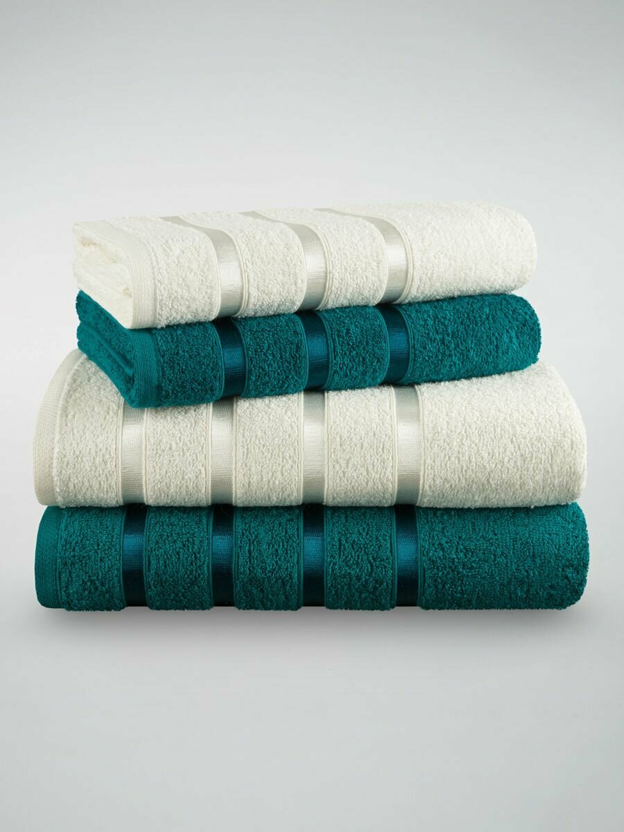 Купить Набор полотенец махровых Diana "Авеню", 4 шт. Изумруд/Молочный, 100% хлопок