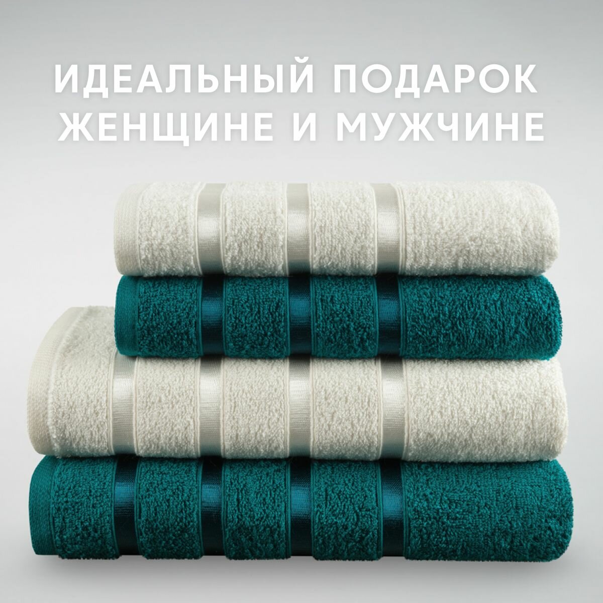 СохранитьНабор полотенец махровых Diana "Авеню", 4 шт. Изумруд/Молочный, 100% хлопок интересное: