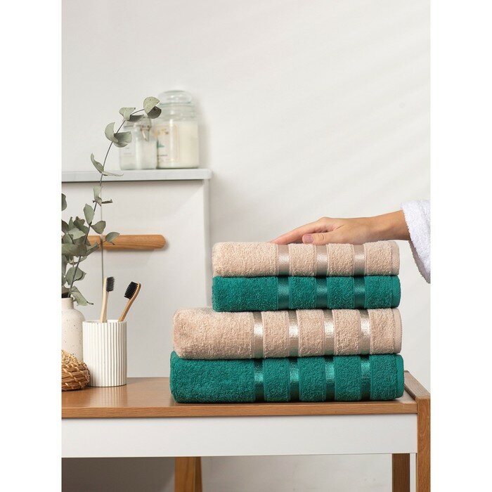 Набор полотенец махровых Diana "Авеню", 4 шт. Изумруд/Молочный, 100% хлопок