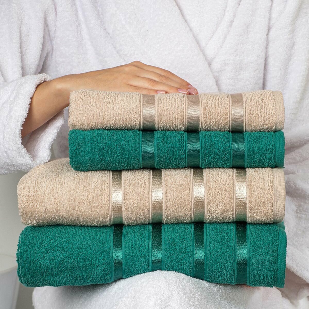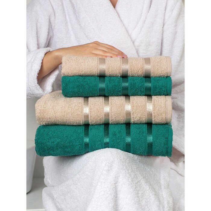 Купить Набор полотенец махровых Diana "Авеню", 4 шт. Изумруд/Мокко, 100% хлопок