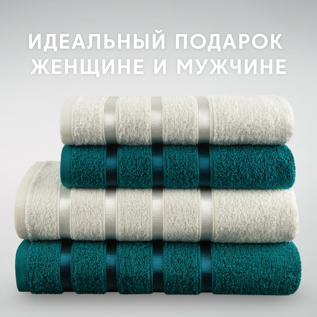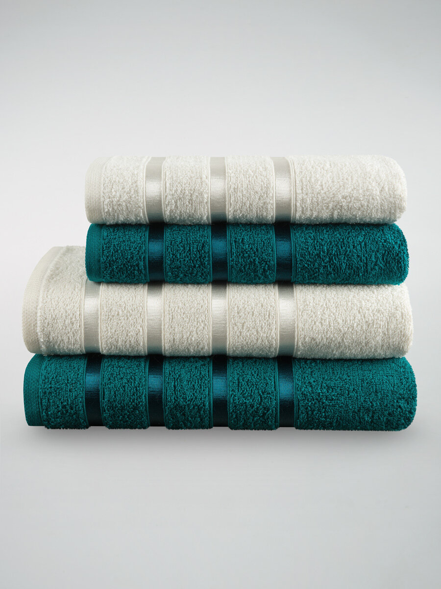 Набор полотенец махровых Diana "Авеню", 4 шт. Изумруд/Молочный, 100% хлопок