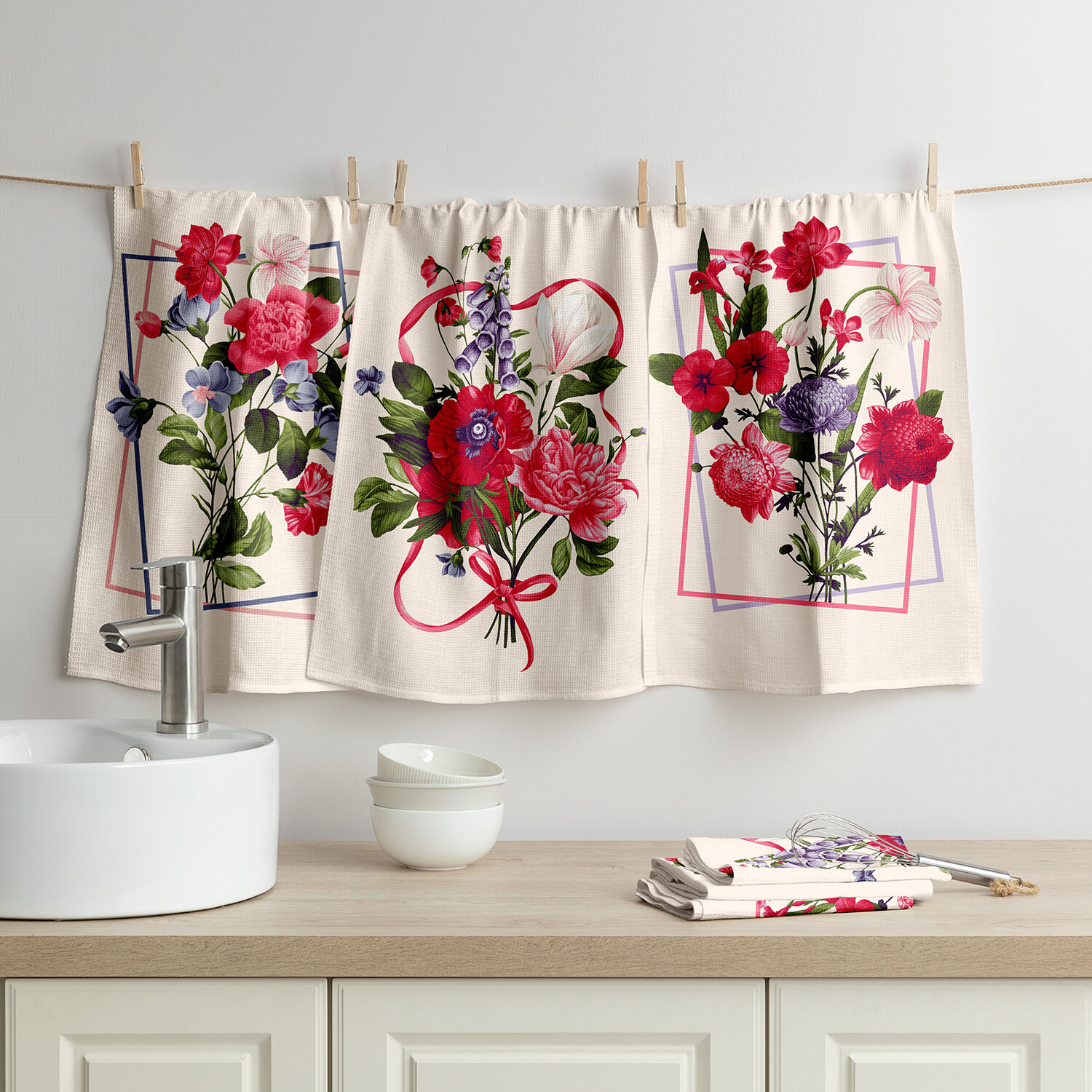 Набор полотенец Этель "Цветочное настроение" 45х70см - 3 шт, репс 167г/м2, хлопок