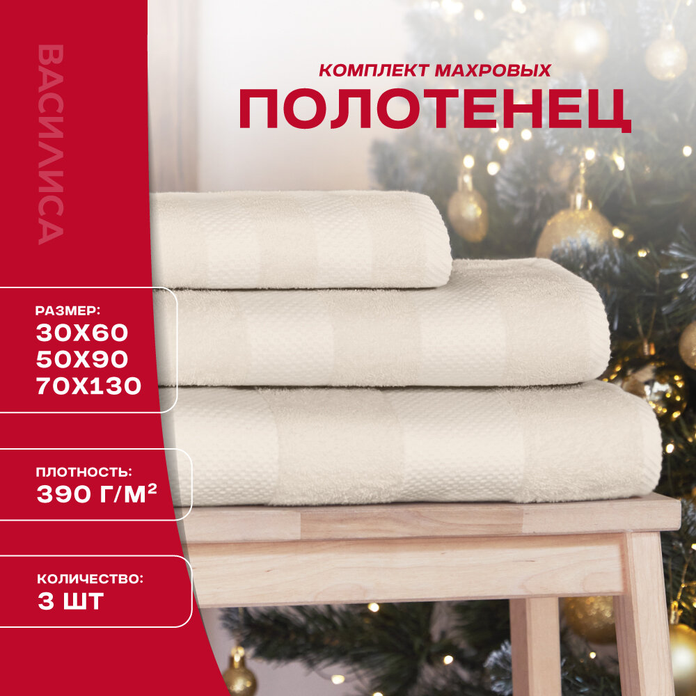 Набор махровых полотенец Конфетти 30х60, 50х80, 70х130, VANILLA ICE