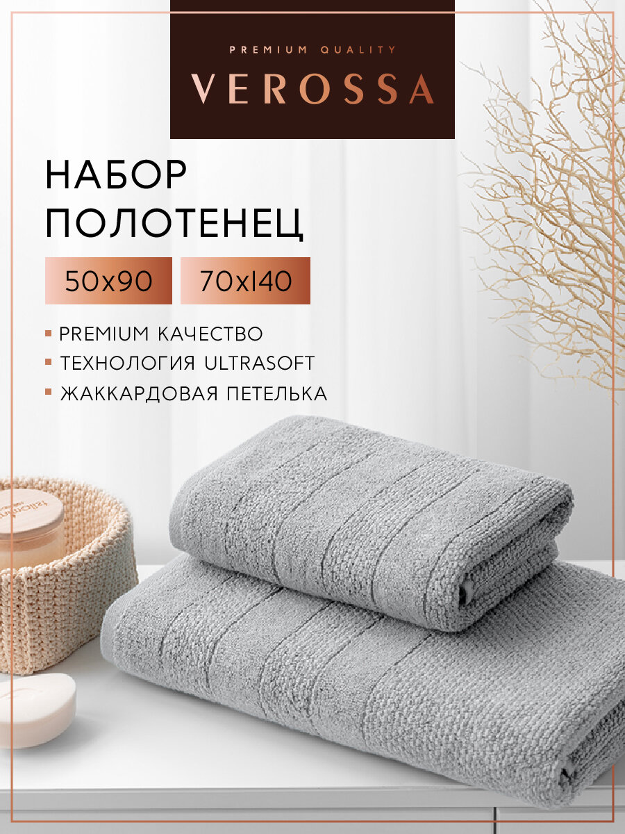 Набор из 2-х махровых полотенец Verossa Milano, Холодный Серый, 50х70х140