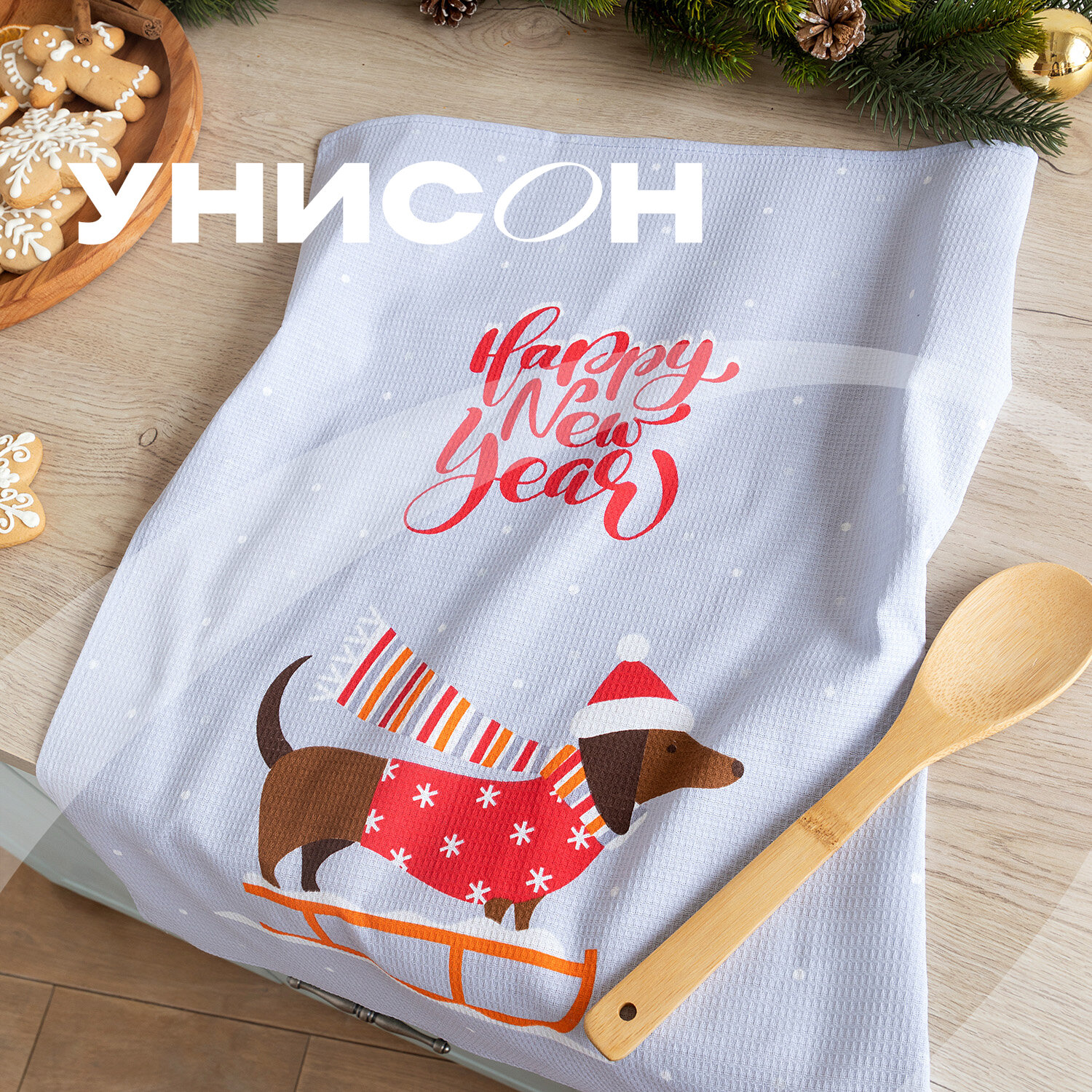 Набор вафельных полотенец 45х60 (3 шт.) "Унисон" рис 33204-1 Smart Fox and Dog интересное: