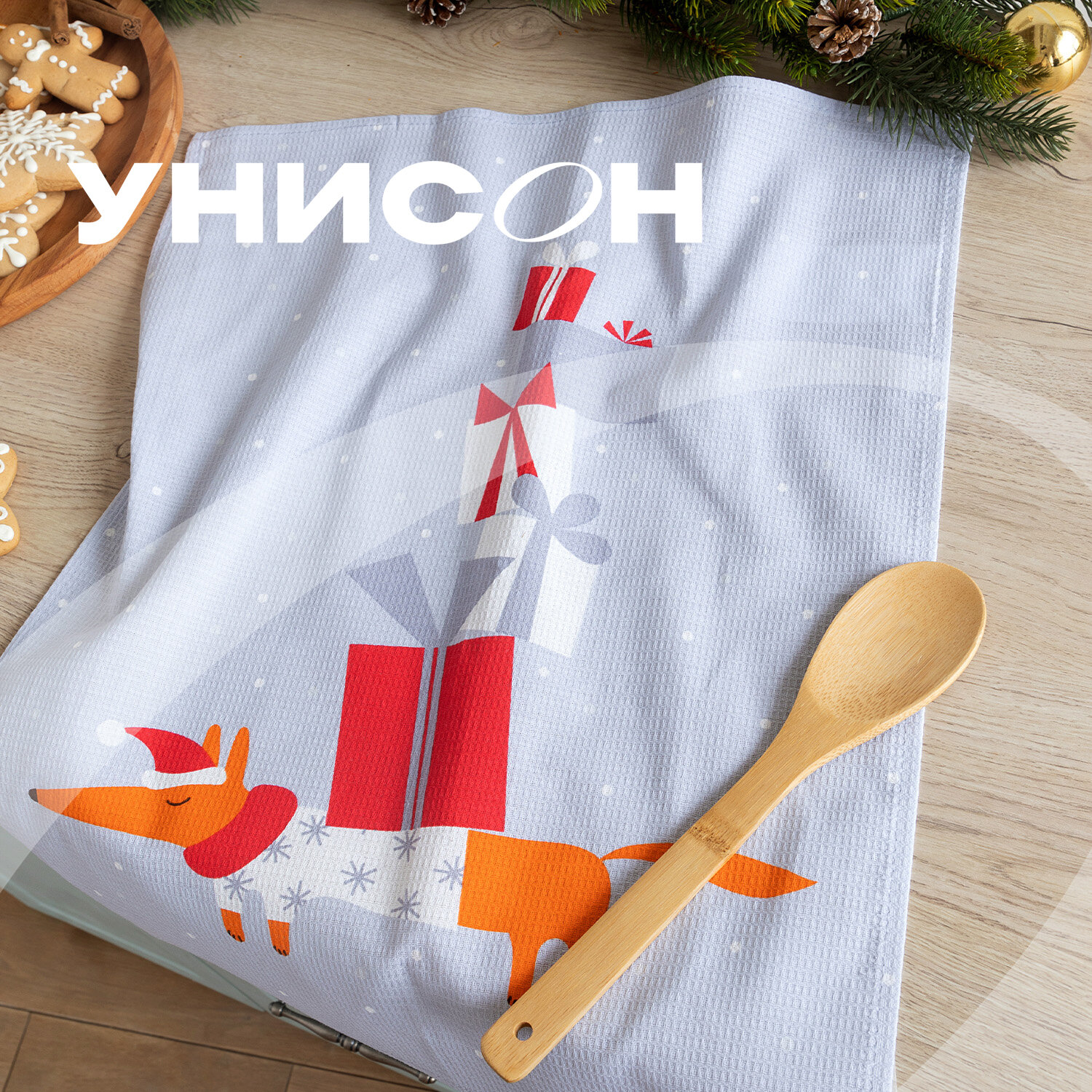 Купить Набор вафельных полотенец 45х60 (3 шт.) "Унисон" рис 33204-1 Smart Fox and Dog