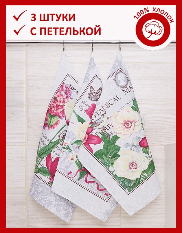 Набор полотенец Этель "Цветочное настроение" 45х70см - 3 шт, репс 167г/м2, хлопок