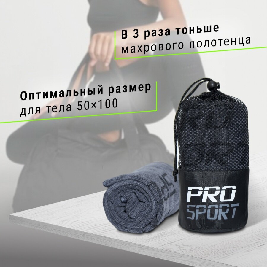 Полотенце для спорта и фитнеса из микрофибры, 50x100