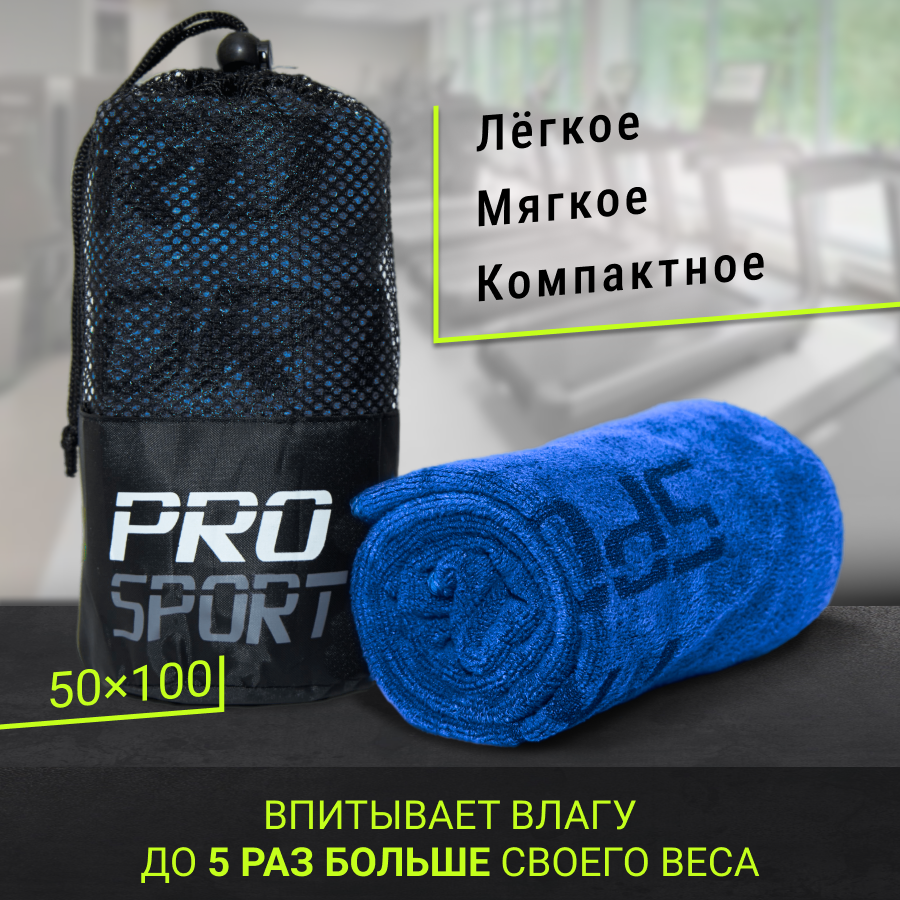 Полотенце для спорта и фитнеса из микрофибры, 50x100