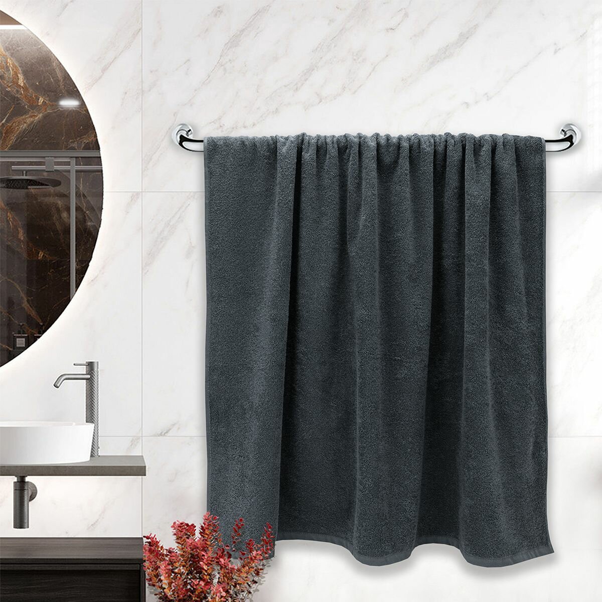 Полотенце большое махровое 100x150 моно серое интересное: